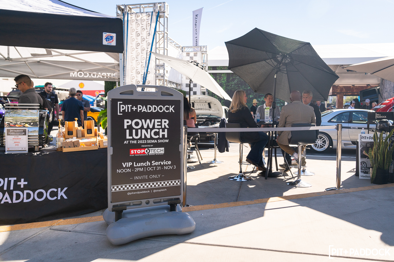- Pit+Paddock Power Lunch presented by StopTech is a new hospitality service at SEMA where our staff members serve meals to our valued partners and media guests.