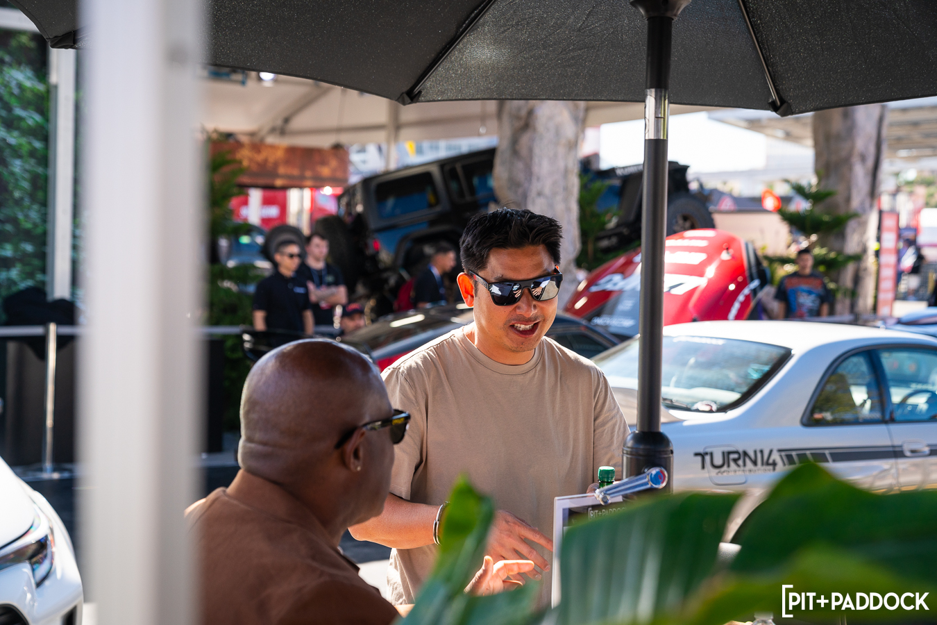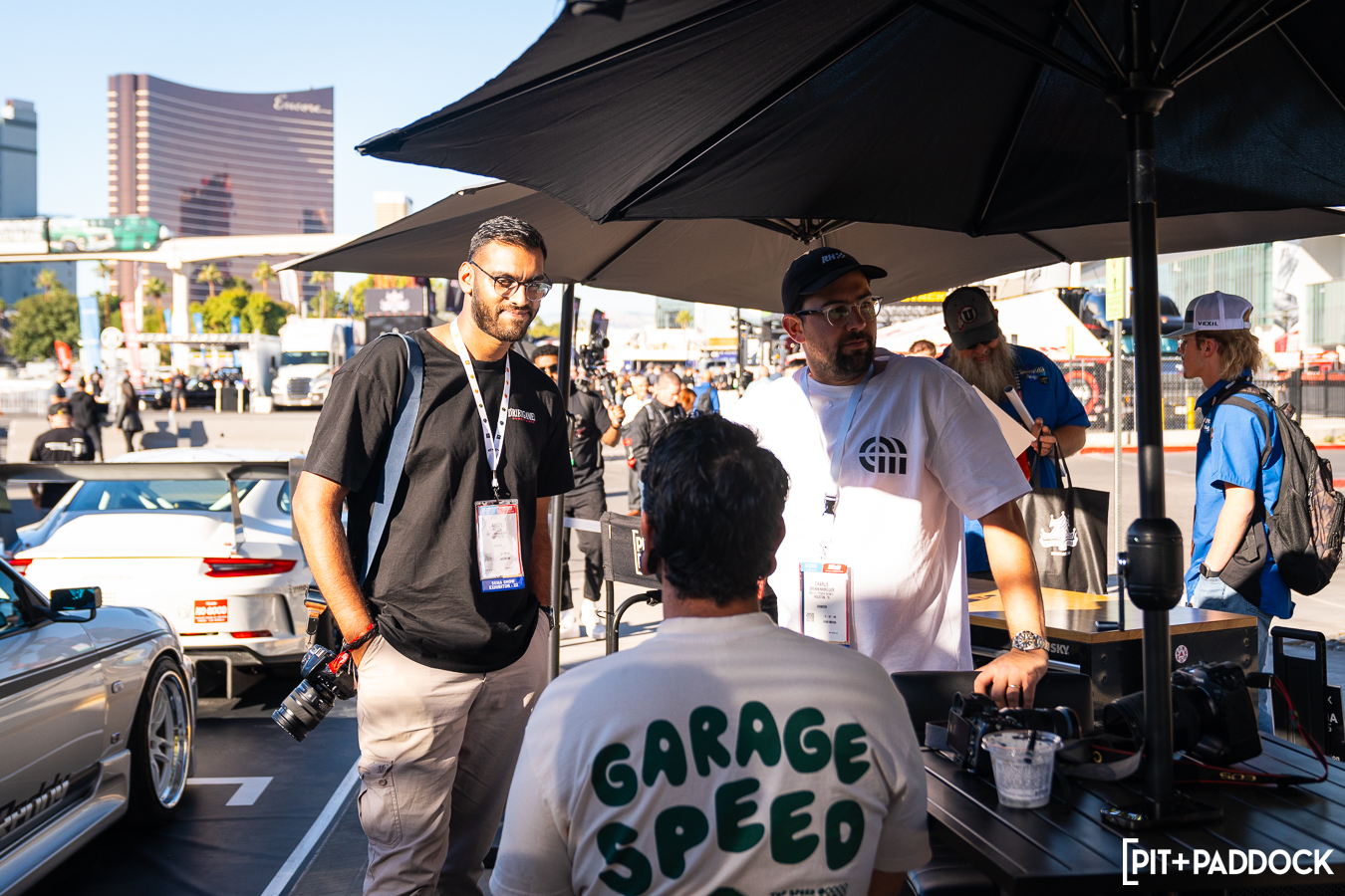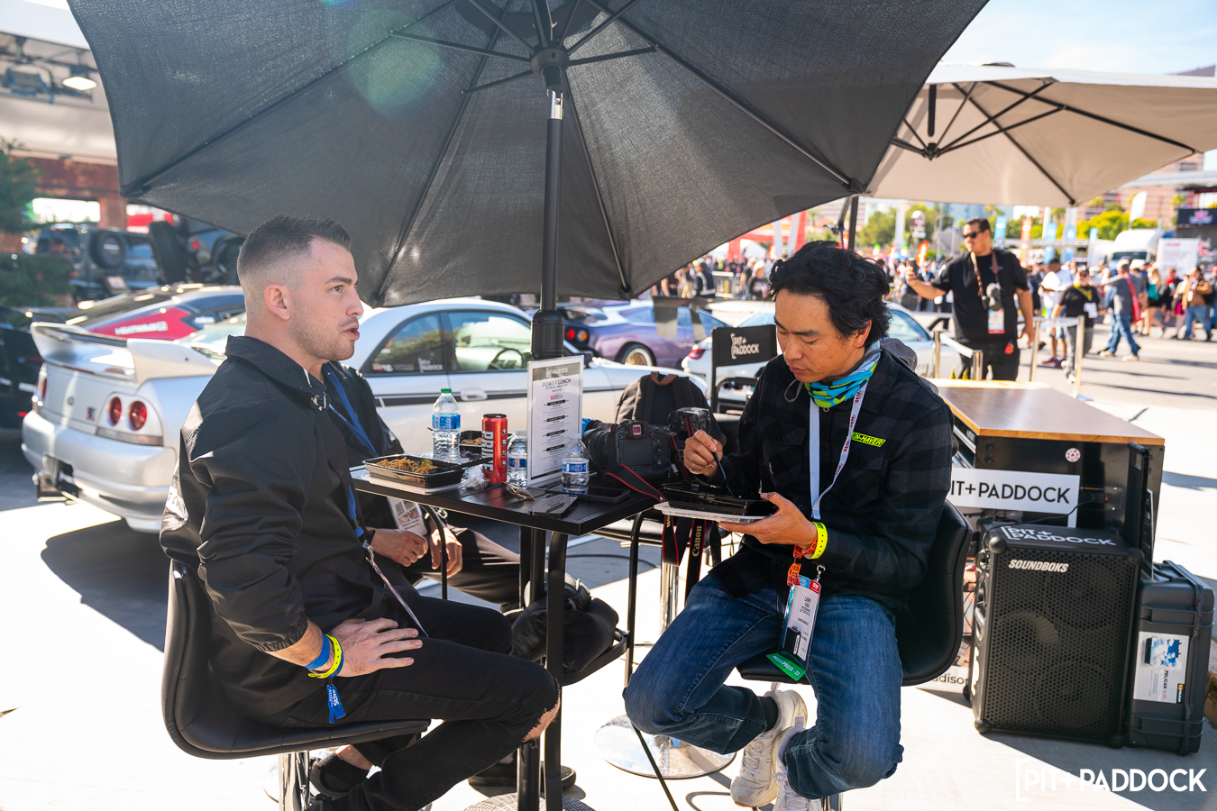 Hosting Power Lunch for the second year in a row has become a bit of a staple for the Pit+Paddock booth at SEMA. Every day around 11:45 AM, you can observe the number of major players in the community begin to hang out around our featured vehicles. This year’s Power Lunch patrons included Adam LZ, Vin Anatra, Jon Sibal and Larry Chen, just to name a few.