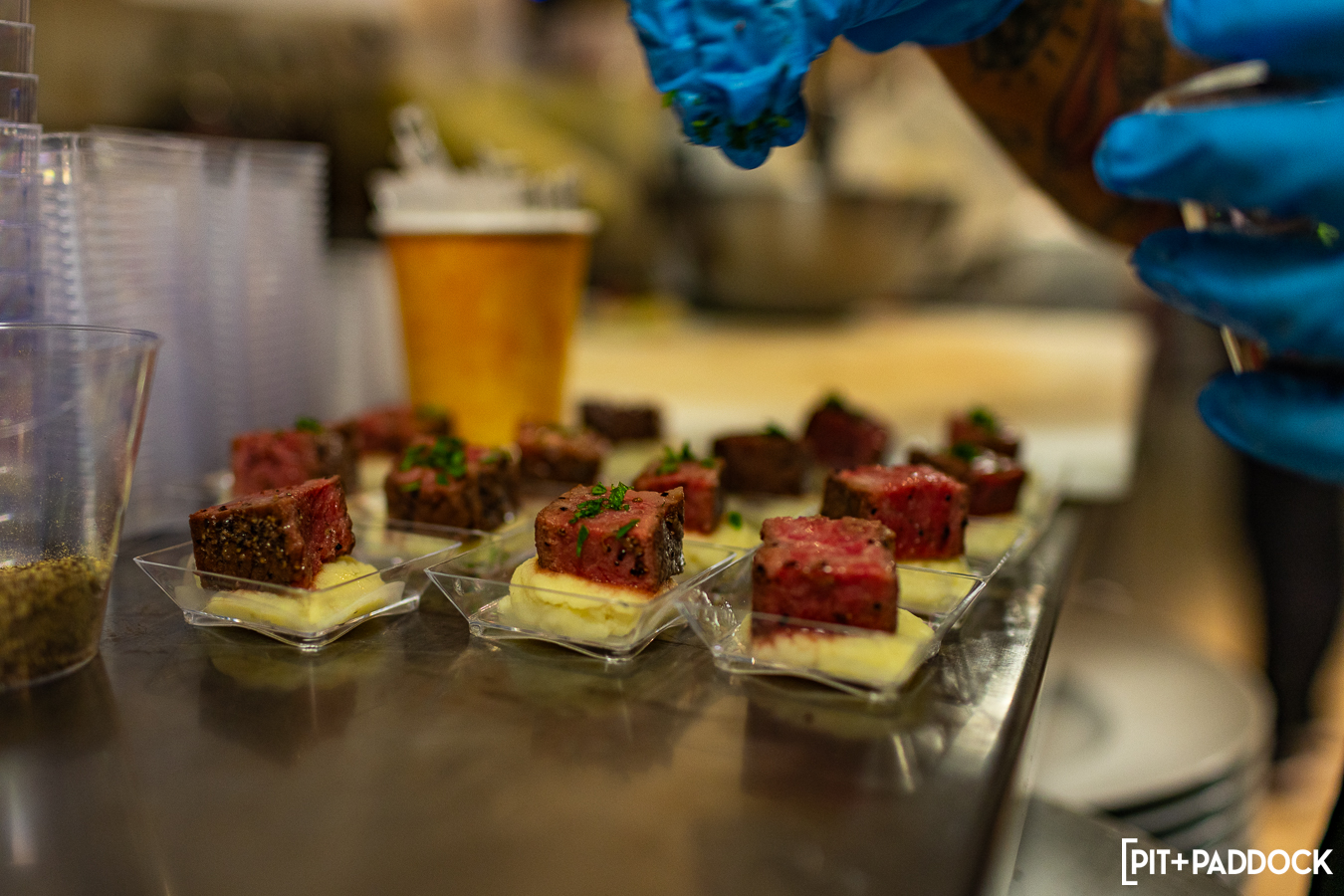 The track theatrics worked up our collective appetite and we were grateful to have Finesse Catering LV for company throughout the weekend. From before the first practice, until the checkered flag waved, we were all treated to a seemingly endless variety of perfectly prepared bites. The offerings shifted daily to keep things fresh: Thursday’s Asian menu and Friday’s American fare all received the coveted chef’s kiss from our VIP guests and helped elevate our race viewing experience even further.