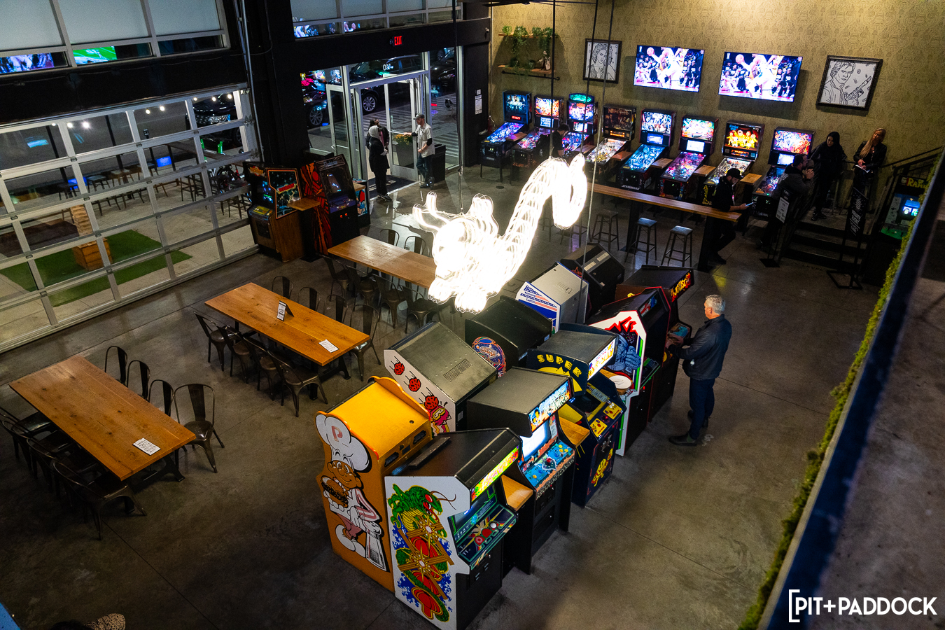 This year’s Industry Night was a direct compliment to what Turn 14 Distribution featured at both its SEMA and PRI booths – the Pit+Paddock x Bilstein BMW E91 GTS Tribute build. The Fire Orange wagon was one of the most talked about Euro builds of 2023, and with Akrapovič as the title partner of Industry Night, we offered high-quality posters of the BMW Touring to any fans of the build attending PRI. Then, after the first day of the show was over, we invited 150 of our partners and media guests to 16-Bit Bar+Arcade for an evening of fun, food, and friends.