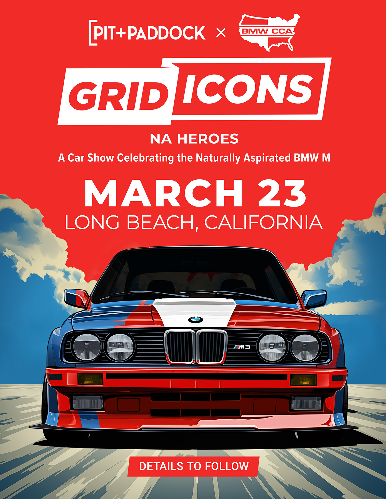 - The third Grid Icons chapter called “NA Heroes” partners Pit+Paddock with BMW CCA to celebrate an iconic era of BMW M vehicles.