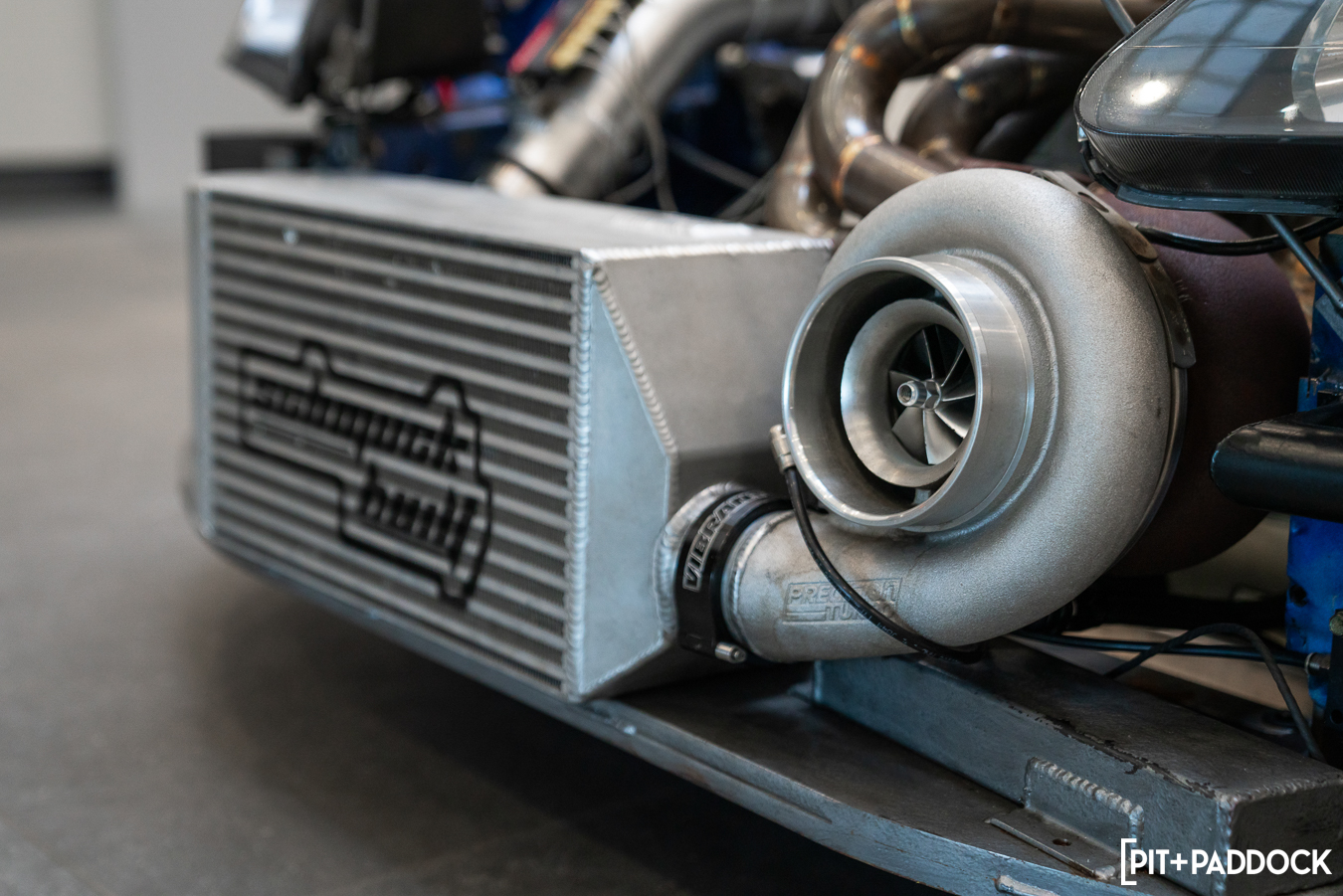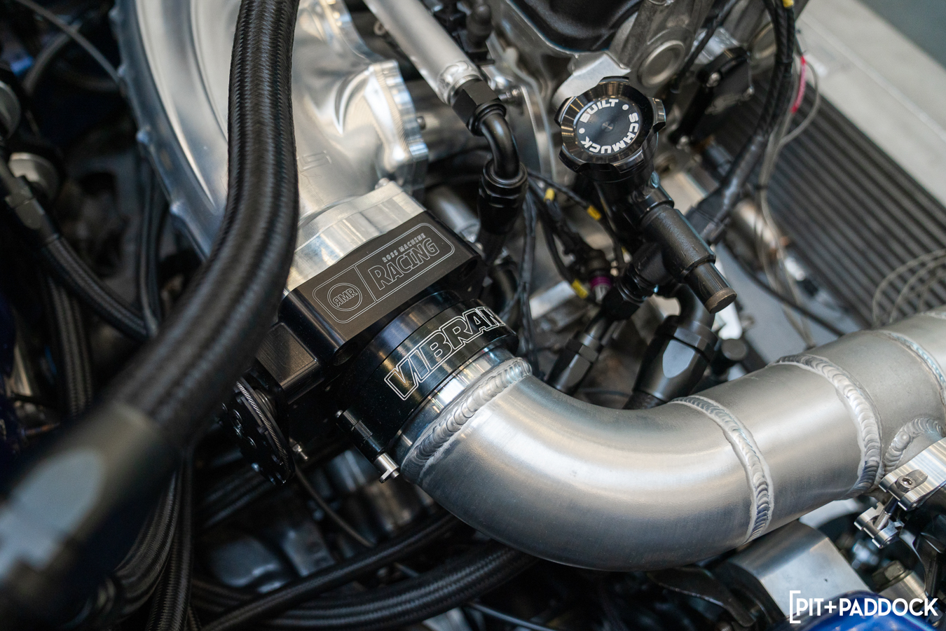 It’s a long list. Basically, every fitting and hose on the car, intercooler core, intercooler piping, HD clamps and couplers, T-bolt clamps, stainless piping for the exhaust, and a few other parts are all from Vibrant. So without them, and the support from them, the car wouldn’t be where it is either.