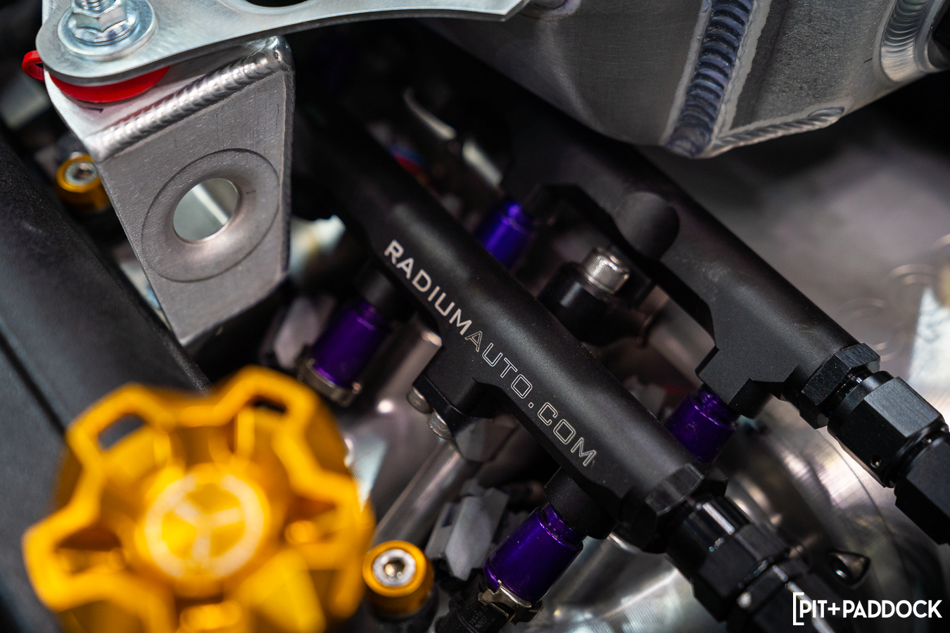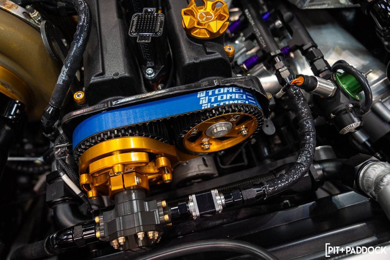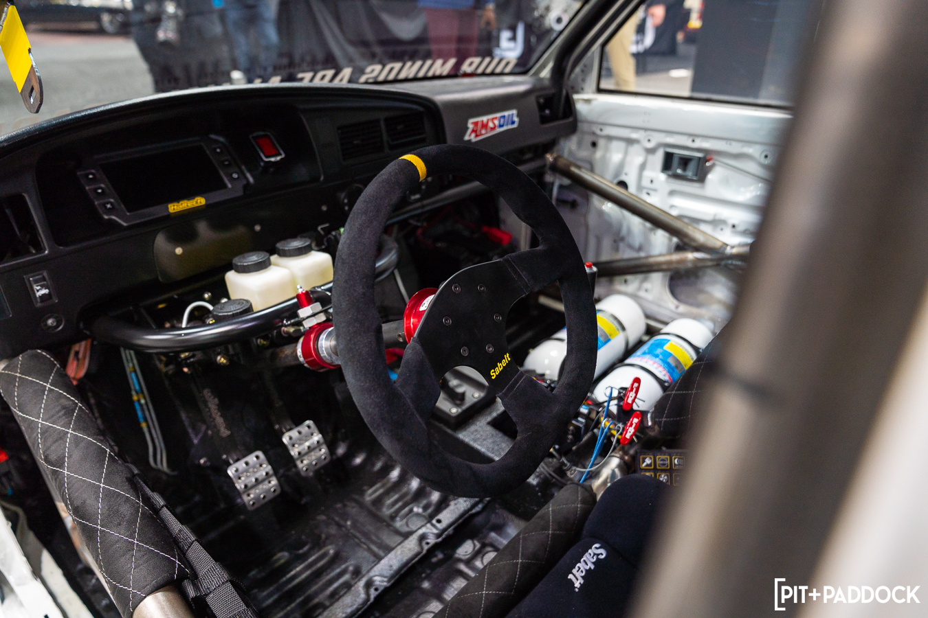 It was no surprise to see Scott’s Hilux parked proudly at Vibrant Performance’s booth at PRI. The Canada-based company has earned a reputation for featuring some of the wildest aftermarket builds, largely because its components have helped them all achieve their visions and its products on this Hilux were among the most visible. The Gen3 catch can was among the varietal within the Hilux’s engine mod list: a Brian Crower billet crank and rods, CP pistons, Supertech valves, a Platinum Racing billet fuel pump drive, and Vibrant PTFE plumbing for air, fuel, and water.
