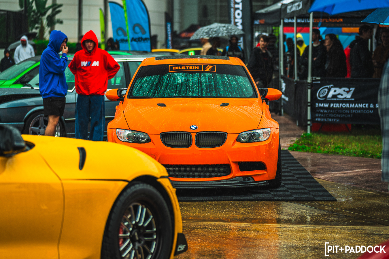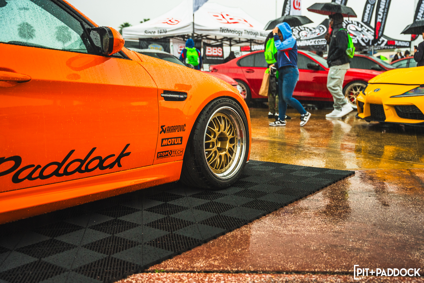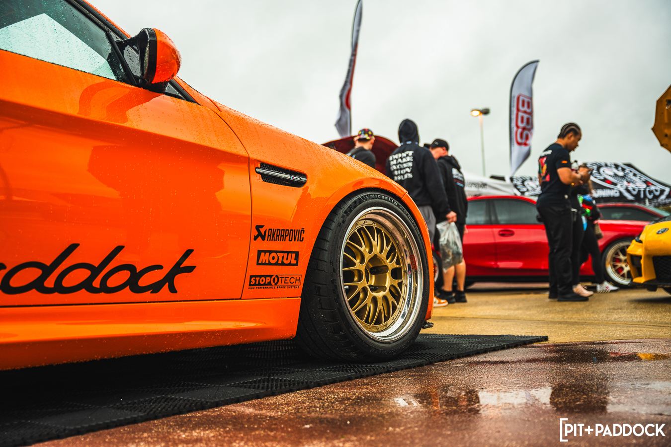 While a conventional car show might have been spoiled by rain, the downpour allowed us to show off an important party trick: the Ceramic Pro KAVACA PPF. As the weather event continued to pummel the Invasion grounds, the Pit+Paddock x Bilstein E91 GTS Tribute Built by PSI seemed to shrug it off, beading away the moisture as the boffins at Ceramic Pro intended.