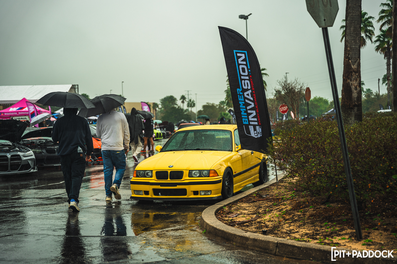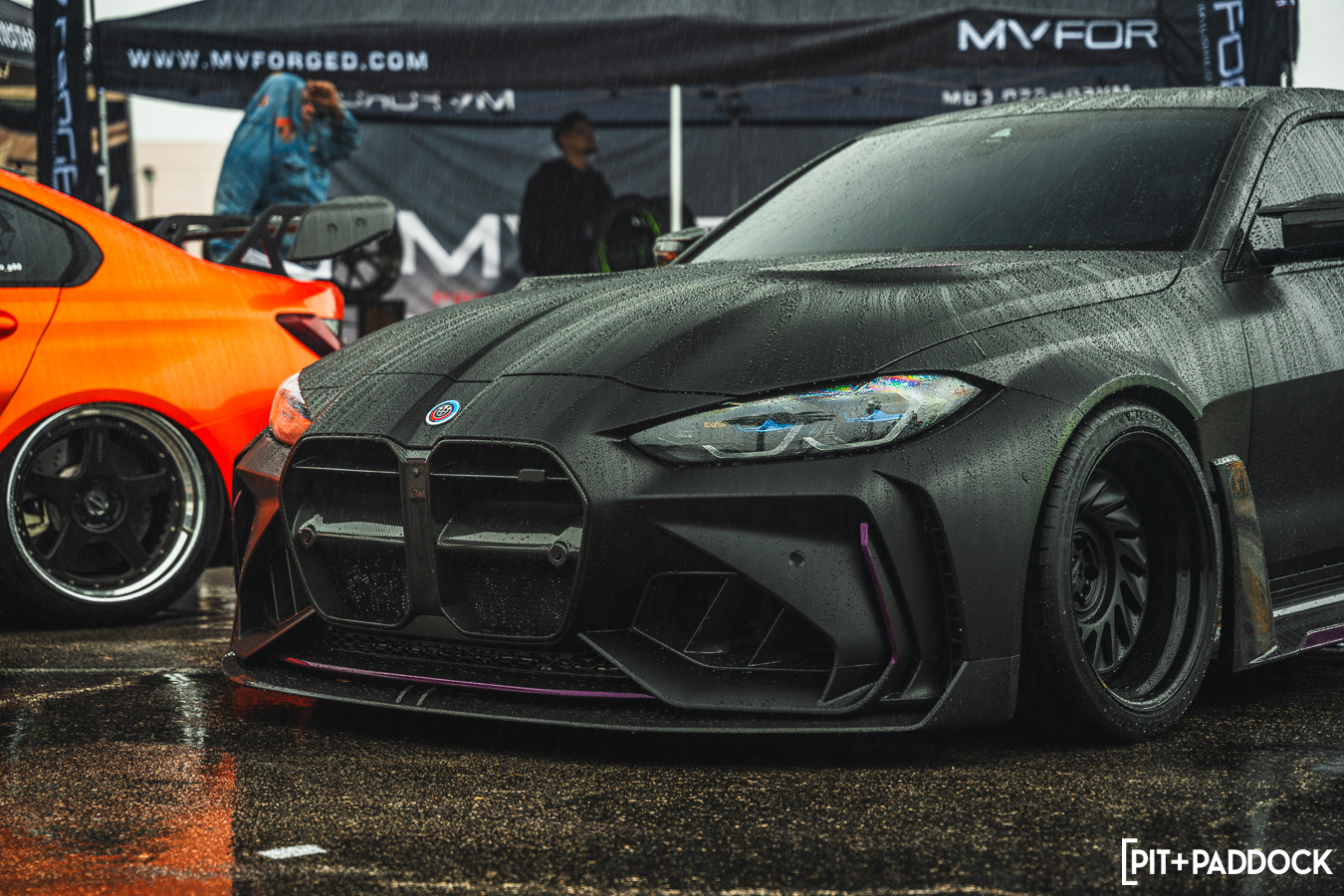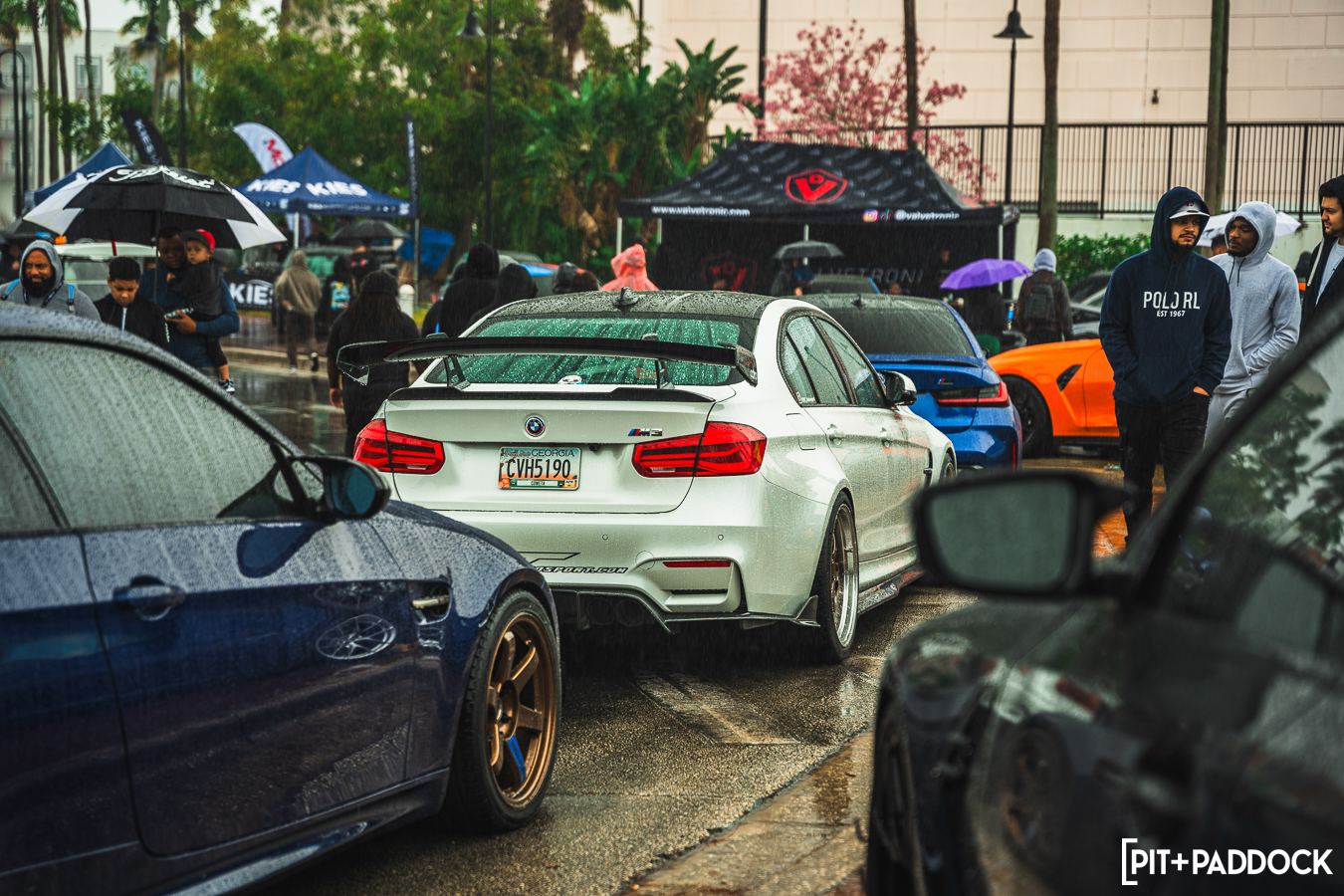 While a conventional car show might have been spoiled by rain, the downpour allowed us to show off an important party trick: the Ceramic Pro KAVACA PPF. As the weather event continued to pummel the Invasion grounds, the Pit+Paddock x Bilstein E91 GTS Tribute Built by PSI seemed to shrug it off, beading away the moisture as the boffins at Ceramic Pro intended.