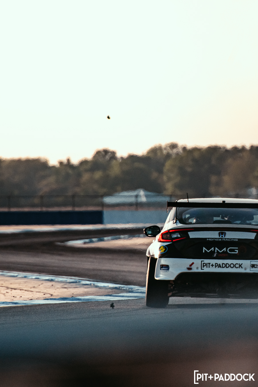 As luck would have it, a seatbelt error during the driver change set us behind and the following cautions weren’t kind to the #93’s strategy. Wittmer, as a consequence, fell 14 seconds behind the group. Still, resilience was fresh on the brain from Daytona and Wittmer soon proved that pace was the Ace up his sleeves. He was one of the fastest cars in the field during the second half of the race. Wittmer clawed the #93 Pit+Paddock FL5 Civic Type R TCR back into the top 10 with only two laps left, ultimately earning P8 on the official timetables.