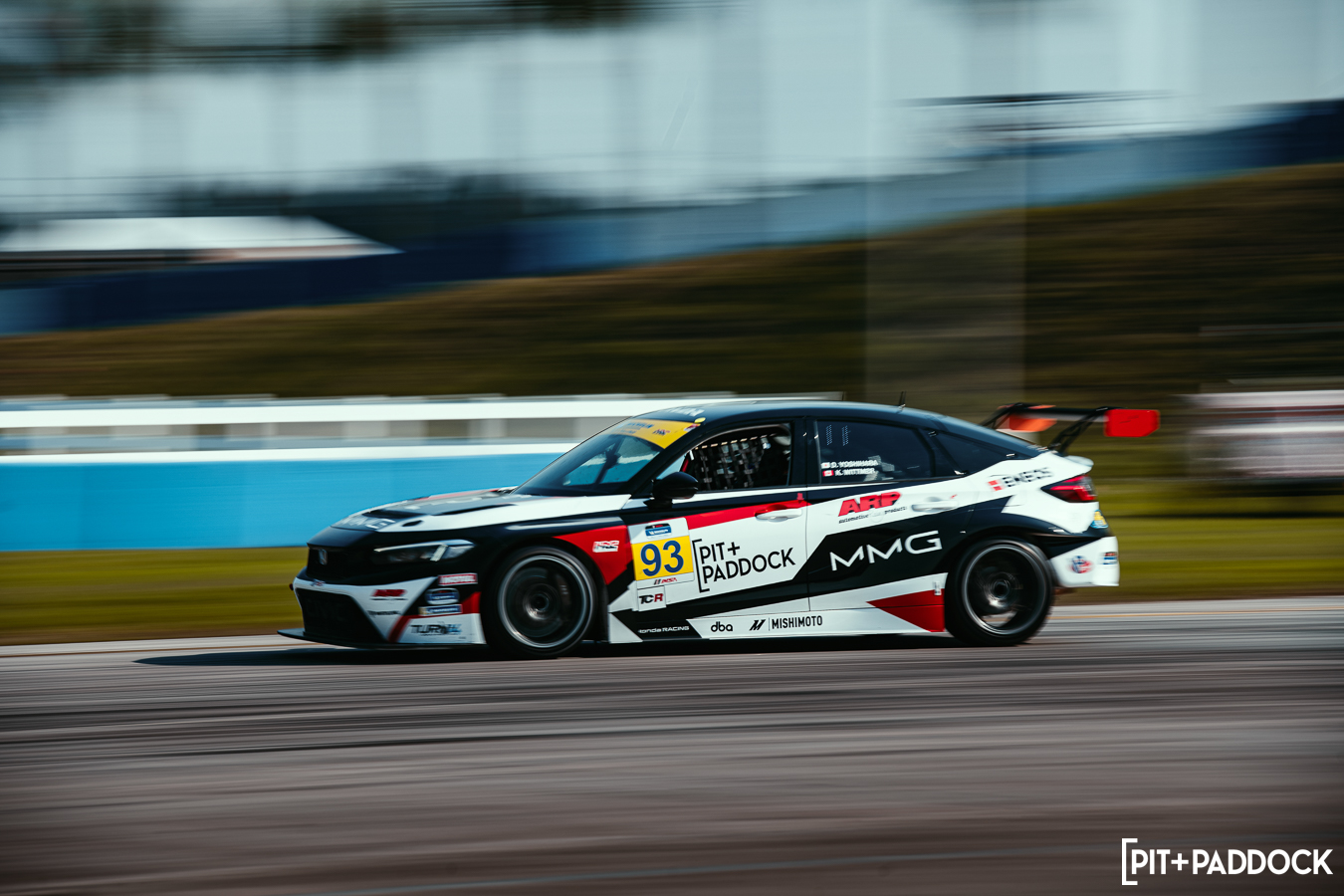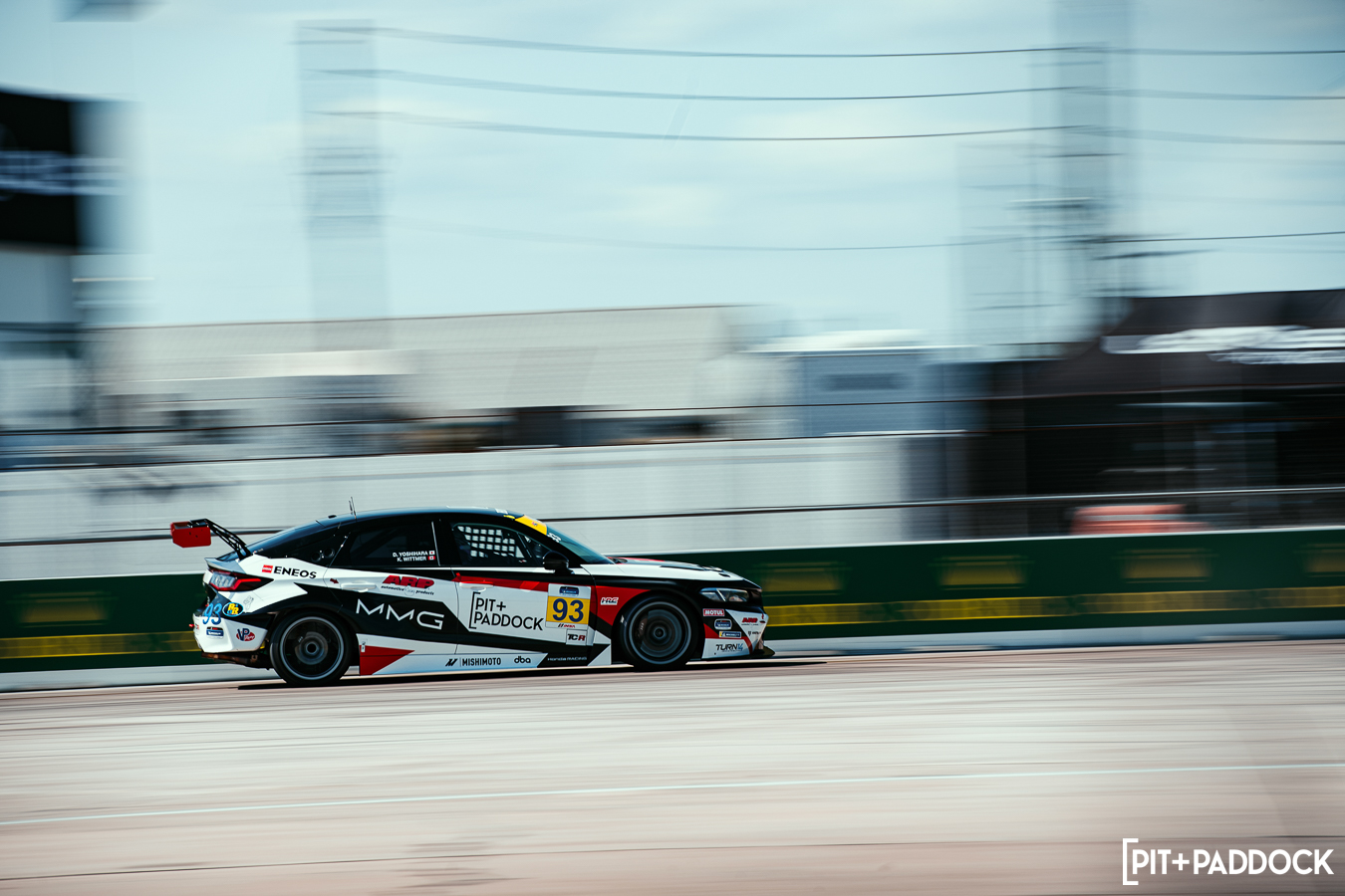 - The #93 Pit+Paddock FL5 Civic Type R TCR, under Montreal Motorsport Group’s (MMG) stewardship and Dai Yoshihara’s guidance, qualified P8 for the Friday contest, with the sister car in P5.