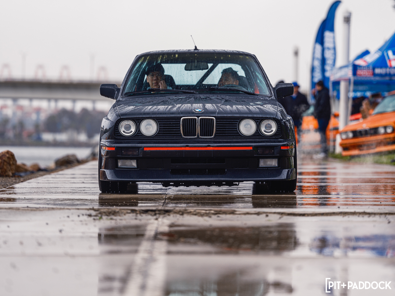 Relief came in two phases. The first was an umbrella from Frank at ST Suspensions that shielded me from further onslaught. The second was a break in the rain, and with it, a chorus of naturally aspirated BMWs who were queuing in the park’s once vacant lot. The sudden influx was shocking, but our crew’s car show experience made quick work of sorting the filing each of the cars into their respective staging areas. Soon, each generation of naturally aspirated BMWs—starting with the E30—crawled into the space and winded around the lighthouse at the top of the hill. Everything was starting to fall into place.