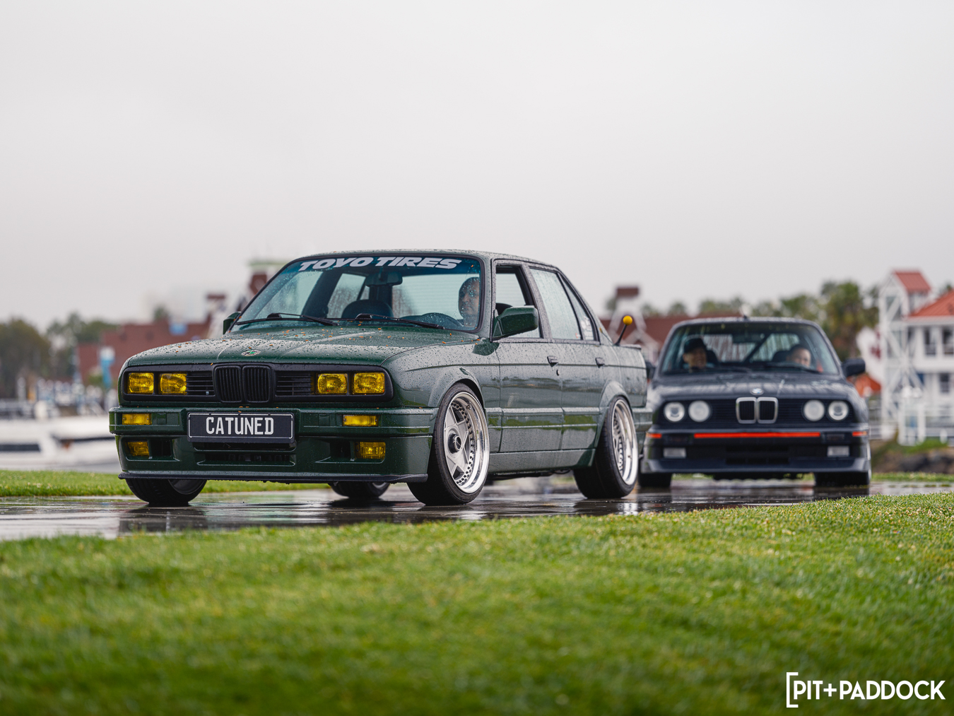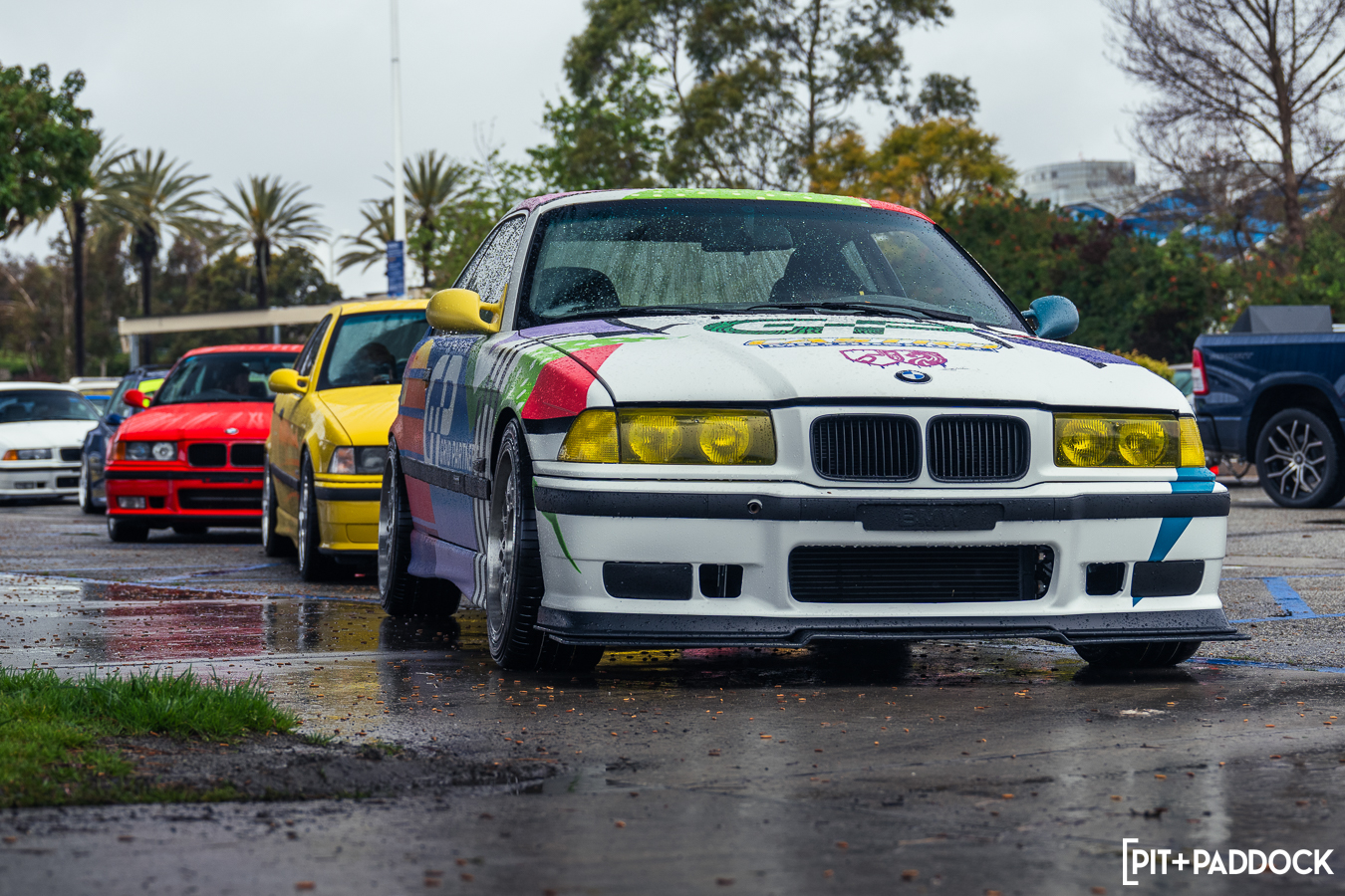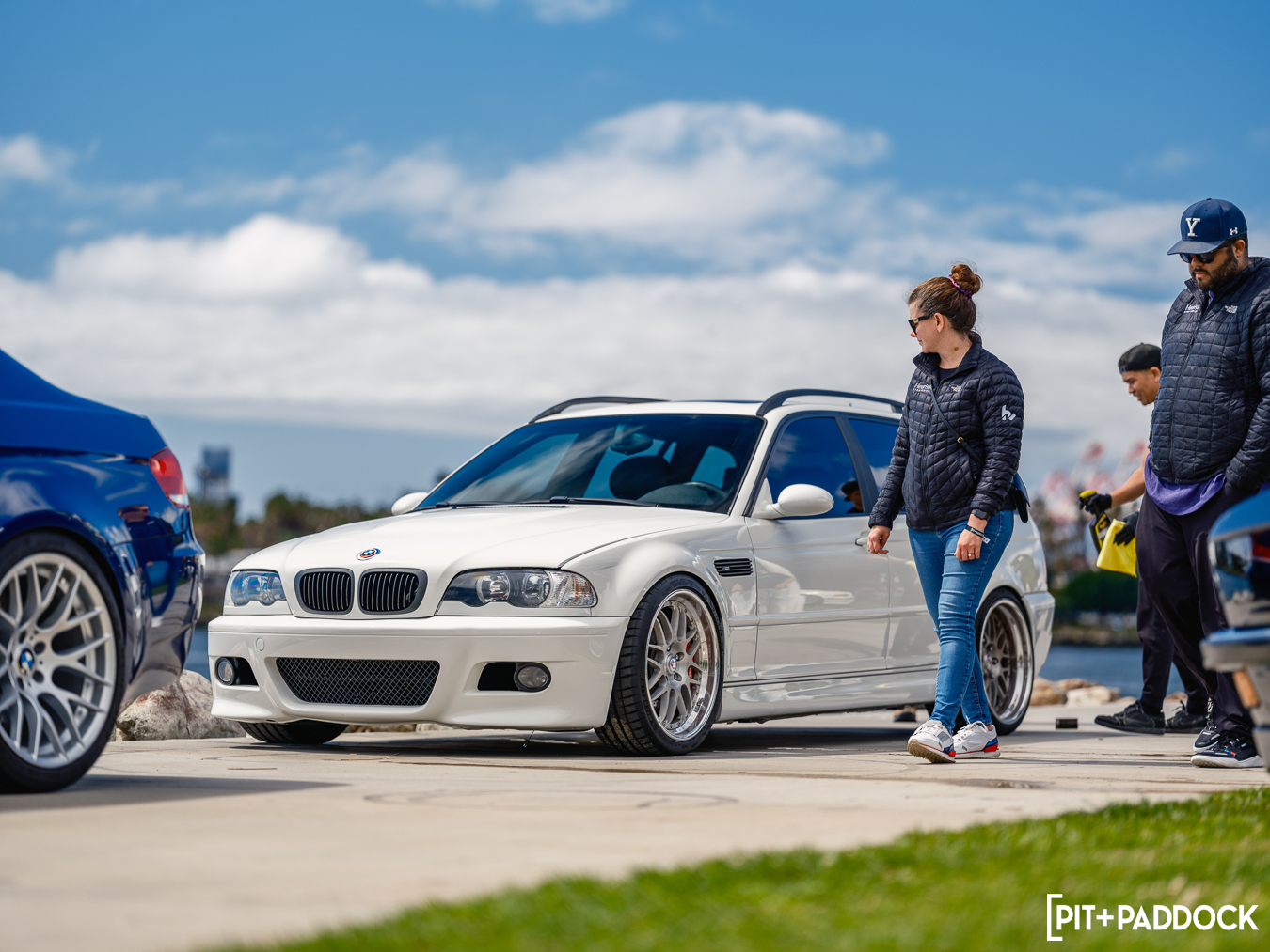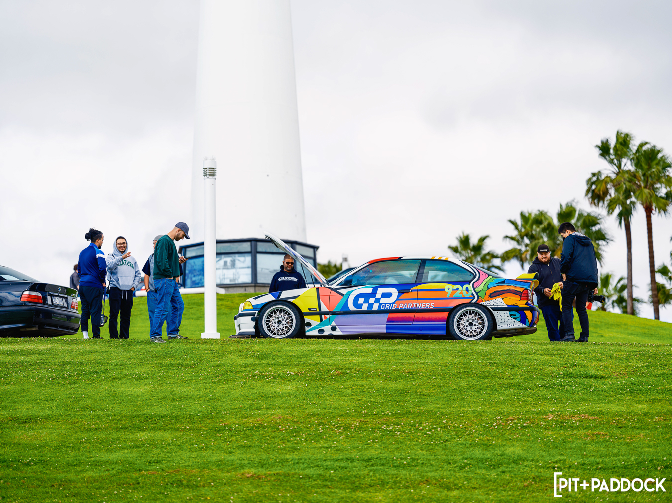 At 7:30 AM, with water dripping from my brow, I turned to face the Queen Mary out at sea and thought about the out-of-town guests who’d shelled out a not-so-insignificant amount of their weekly earnings for a slice of California’s sunrise over Long Beach’s harbor. It was pouring. Aside from the crows looking to coerce worms from their grassy abode, we were the only other animals that stood on Shoreline Aquatic Park grounds that morning. Depending on which way you were facing, dictated what side of your body would take the brunt of the moisture. After parking our two hero cars from BMW Motorsport’s collection—the E92 M3 GT and Z4 GTLM—and working out some of the finer event details with Sam, we both had a worrying look painted on our faces. We had to hope and pray that the nearly 100 curated show cars would brave the weather as we just did.