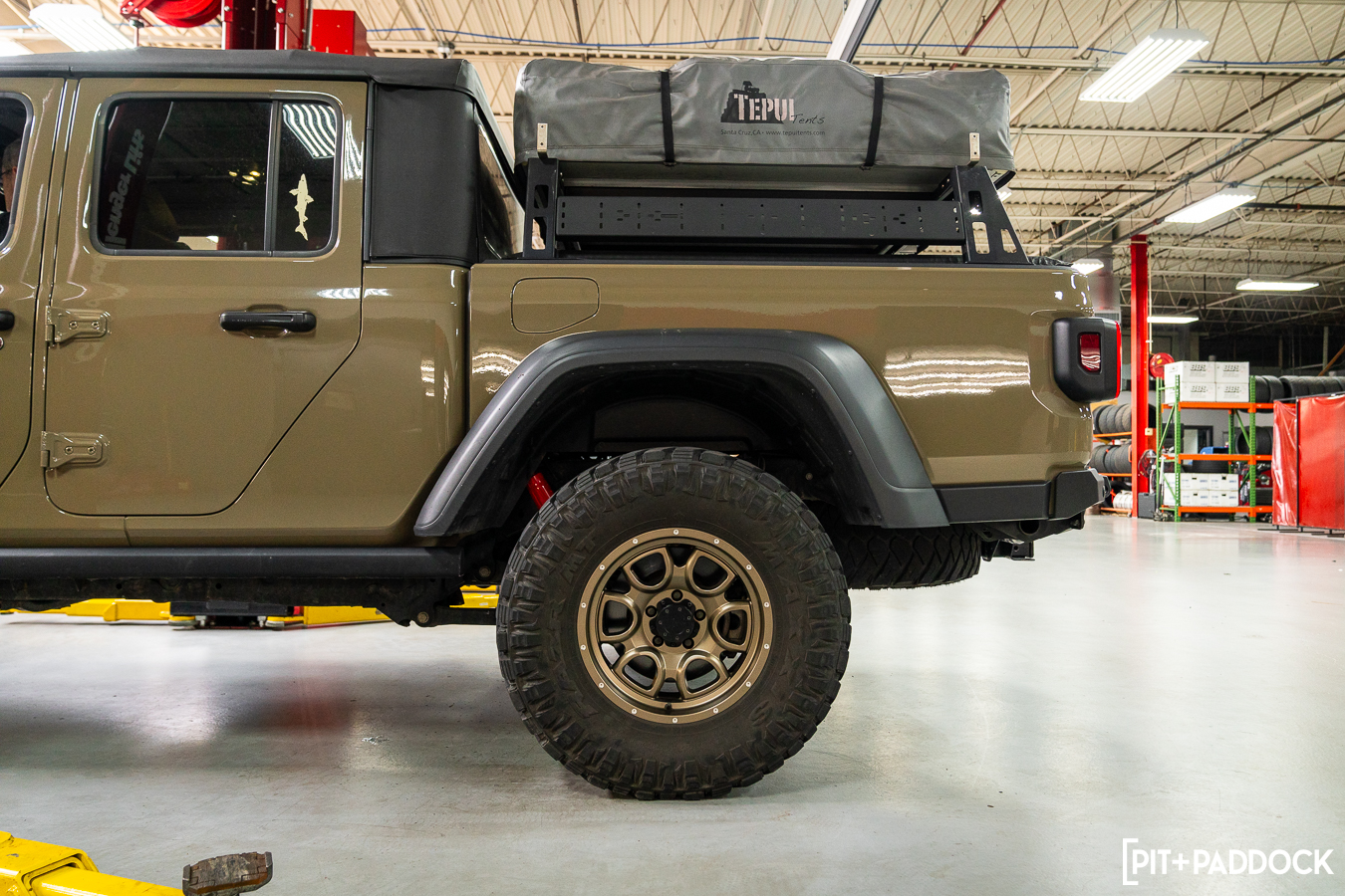 The Gladiator you see here sits at the top of its food chain. The Rubicon trim, as we’ve mentioned before, is equipped with 33-inch tires, a low-range transfer case, stronger axles, 2.0-inch FOX shocks, and more. The factory shocks are what brings us here today. They are, singlehandedly, the Gladiator’s Achille’s heel, the rear suspension considered to be under-valved from the factory. The universally accepted solution? A suspension lift kit.