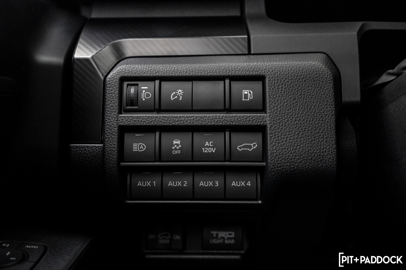 Robust reinforcements further distinguish the Trailhunter from its counterparts. Rock rails and high-strength steel skid plates are standard, as are a 20-inch LED light bar and RIGID LED fog lamps. If these aren’t powerful enough, Toyota has pre-wired three easy-to-reach auxiliary switches throughout the SUV so you can add enough lights to be seen by orbiting satellites.