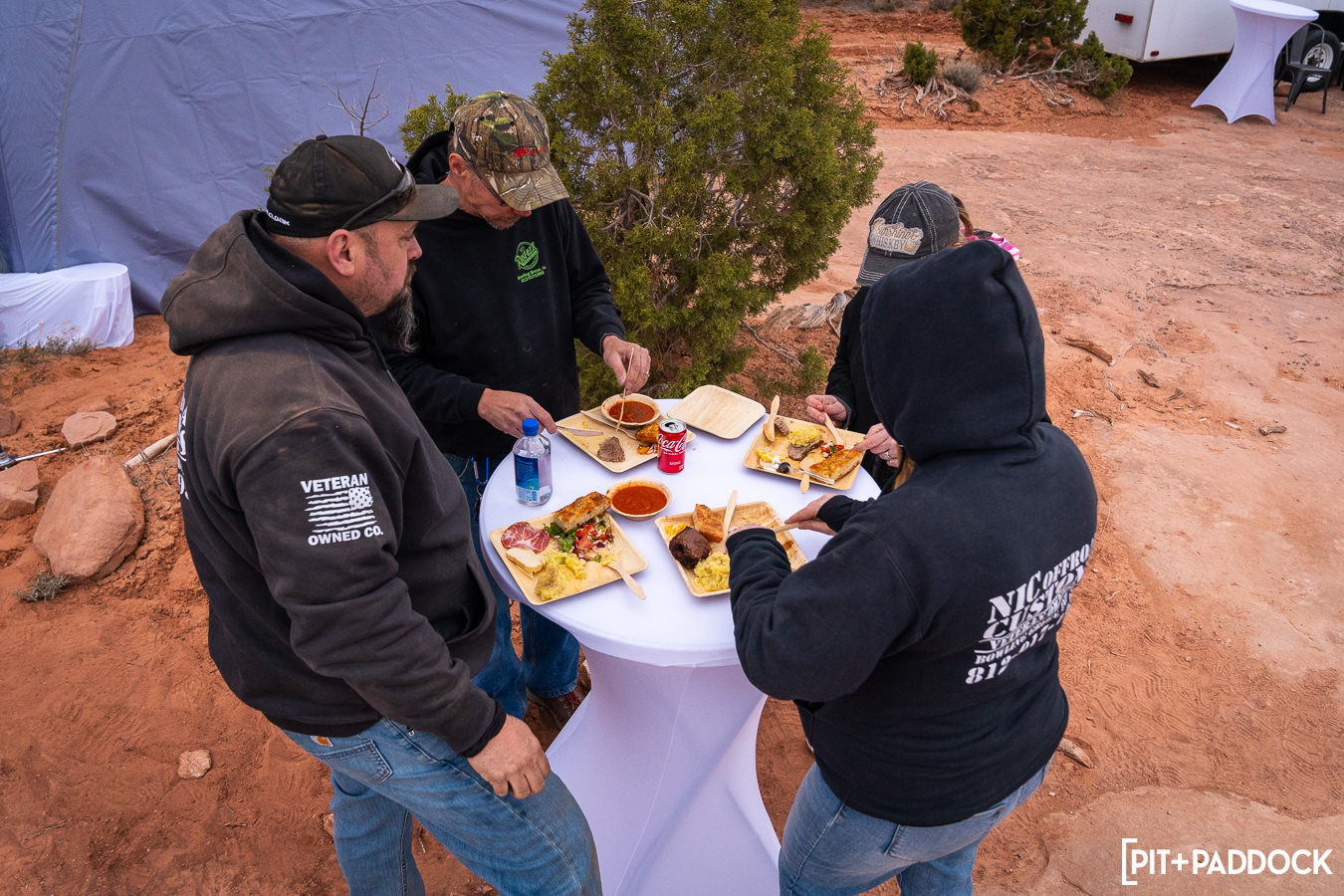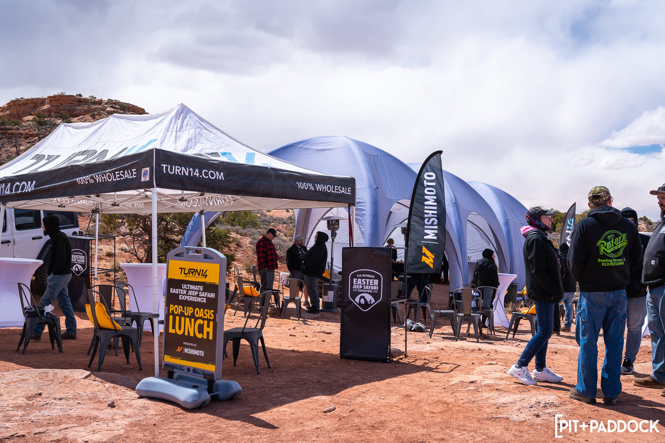 An industry first was a “Pop-Up Oasis” hosted by Turn 14 Distribution and its partners. T14 team members built a full tent and structure in the middle of the desert to host its VIP guests. This bespoke pop-up offered shelter and heat from the cold canyon temperatures and also served up warm lunch entrees prepared by an on-site chef.