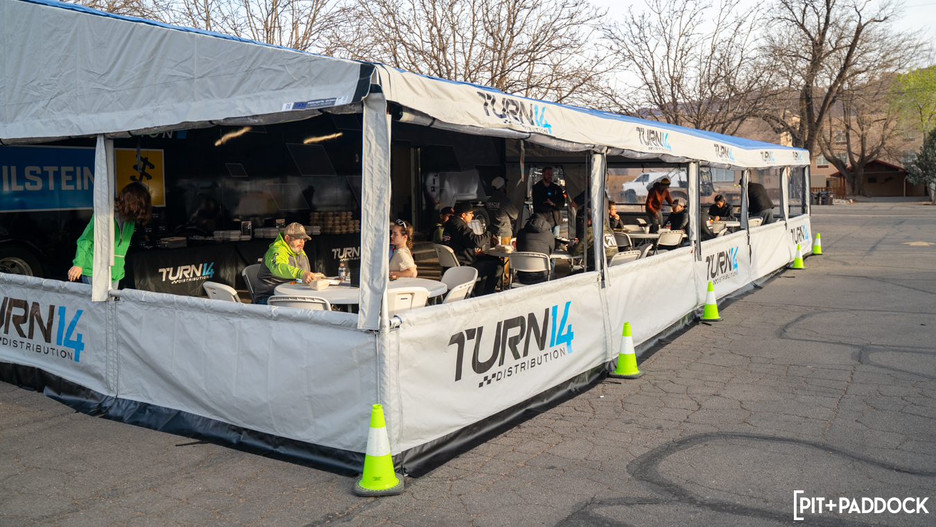 - The Turn 14 Distribution 18-wheeler rig was transported to the heart of downtown Moab to be used as the base for a unique three-day VIP hospitality pop-up during the event.