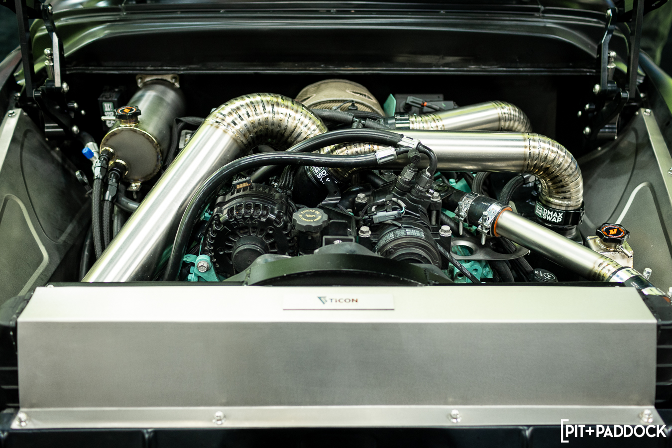 Even though the exterior looks true to the original, there’s a lot of new underneath the skin, including a firewall adjustment, roof chop, and curved door lines for enhanced aesthetics and functionality. Removable bedsides and strategically placed storage compartments add a practical element for road trips. Inside, vintage charm again meets modern convenience. A Dakota Digital cluster and Bluetooth sound system are perfect for Carcelli’s daily commute. Additional upgrades from Hutch’s Welding and TiCON Industries upgrade Kiowa’s exterior with exotic, titanium materials, which elevates the truck a few notches.