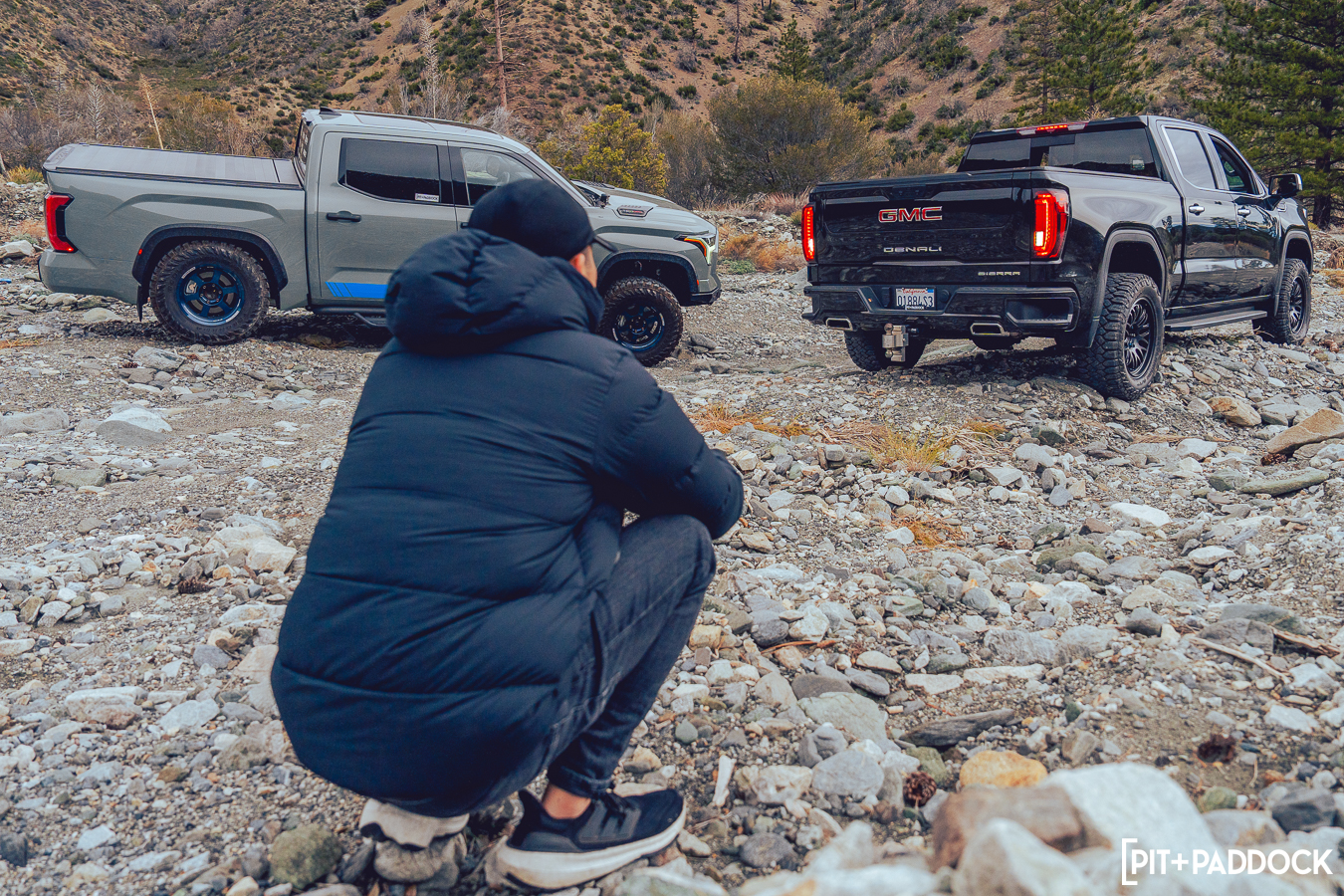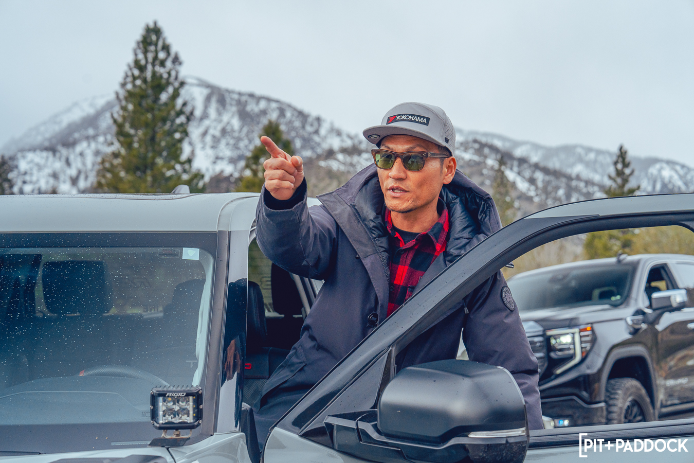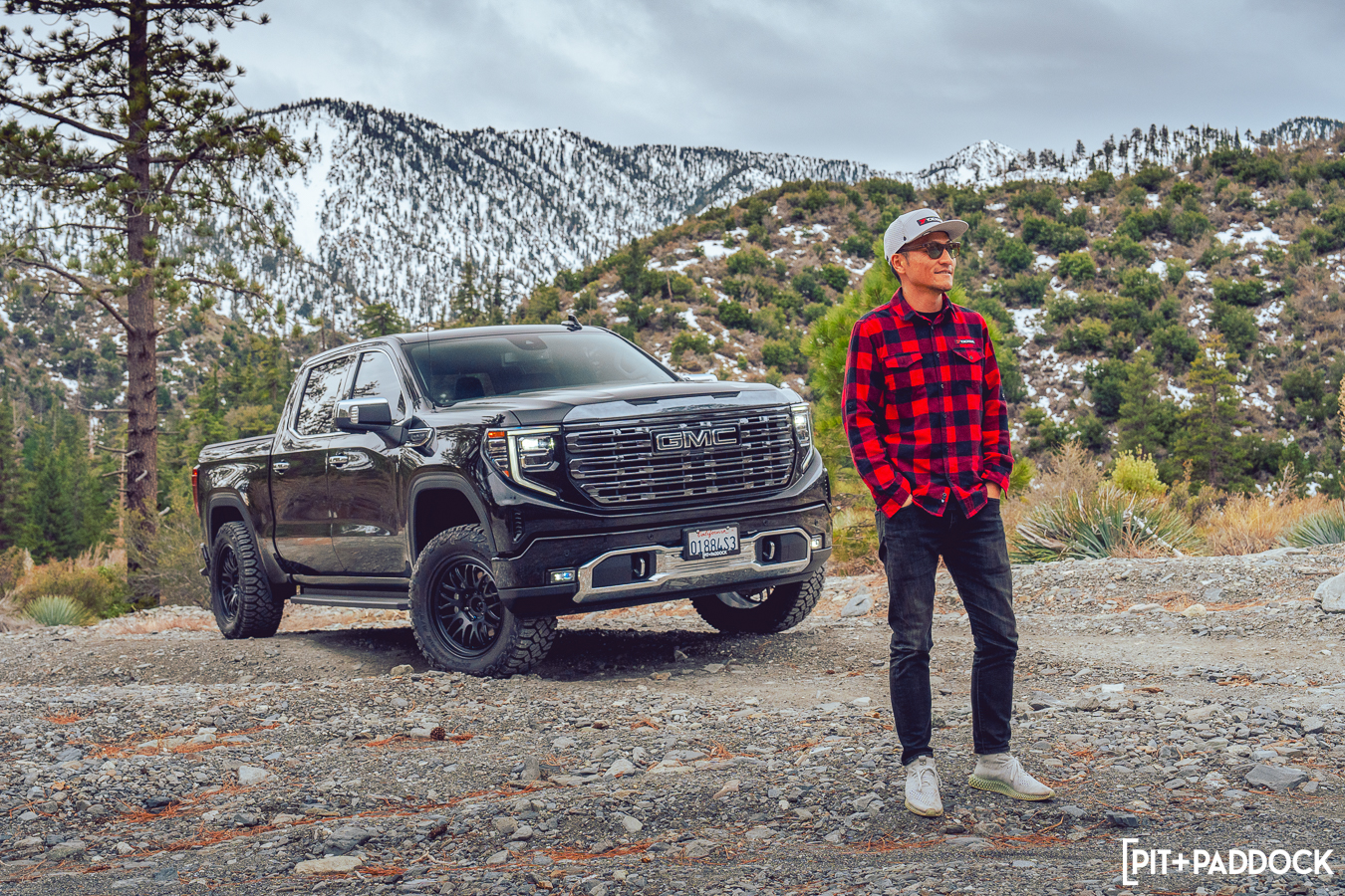 Admittedly, going off-road isn’t nearly as fun alone. The prospect of getting lost or stranded is a pervasive thought, so we thought it best to phone a friend to come with us. That friend was Formula DRIFT champion and current IMSA sensation, Dai Yoshihara. Instead of grabbing the keys to the DAI33, he jumped into his daily driver—a 2022 GMC Sierra 1500 Denali 4WD—and met us off the beaten path.
