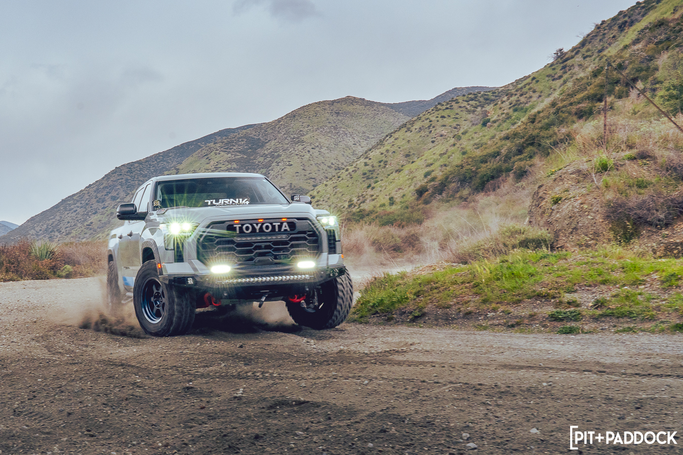 There aren’t too many real-world scenarios that warrant the use of the word “gnarly”. But a couple of weeks ago, that was something that we sought to find, and for good reason: we were coming to terms with saying goodbye to a good friend. Turn 14 Distribution’s Tundra made its debut at SEMA in 2023, but ever since, it’s been a companion to Pit+Paddock for countless West Coast adventures. And because of that, we’ve grown rather fond of it. So before we had to part ways, we thought it best to put it through its paces one last time.