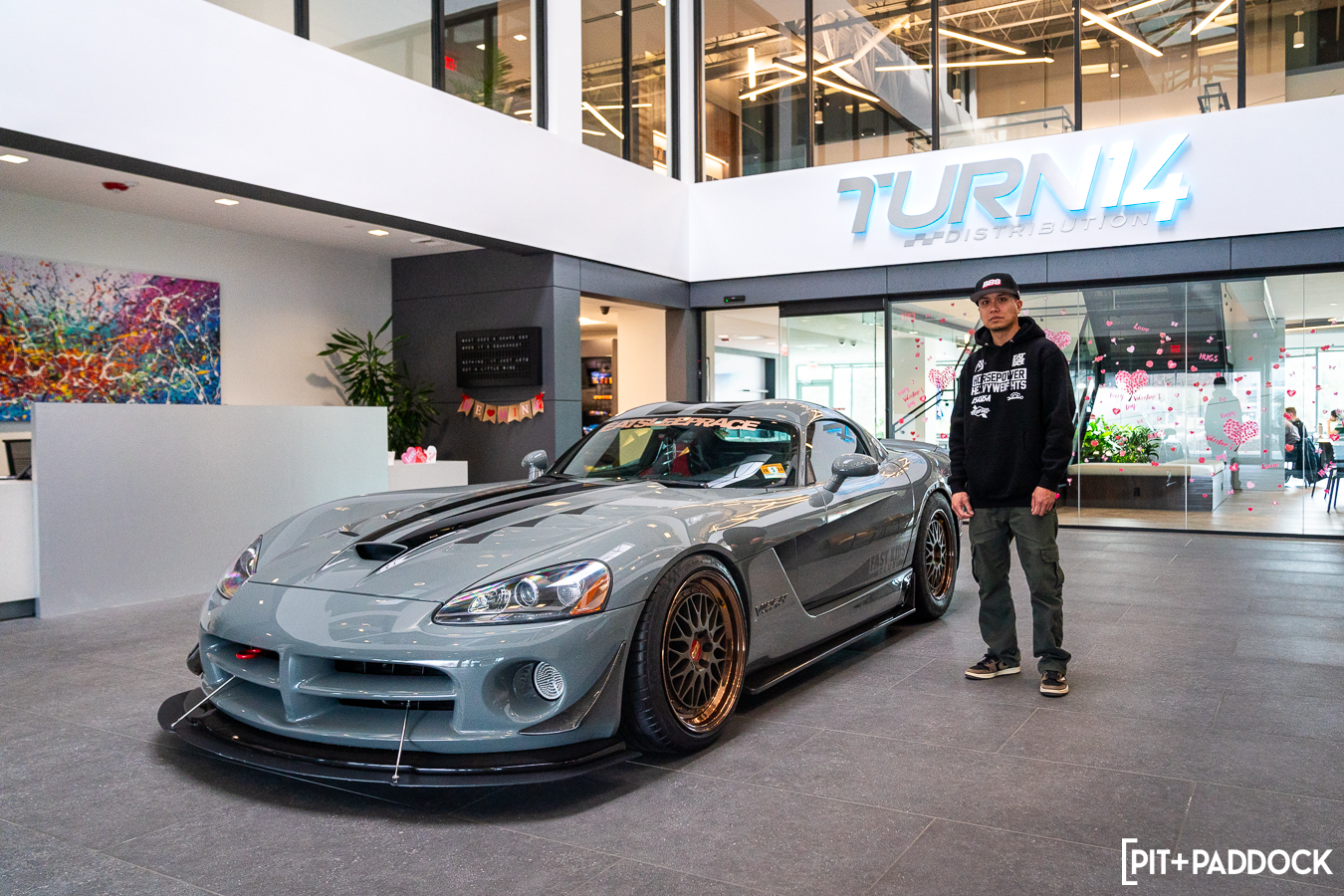 Before I get ahead of myself, I think it’s worth addressing why there’s a car inside Turn 14 Distribution’s lobby. The industry-leading wholesale distribution company rotates this showcase on a monthly basis, allowing its staff to admire exotic, modified, and halo cars in excruciating detail. The Eat Sleep Race Viper was one of those spotlights and, as one of the first American cars here, it attracted a lot of attention (especially from me).
