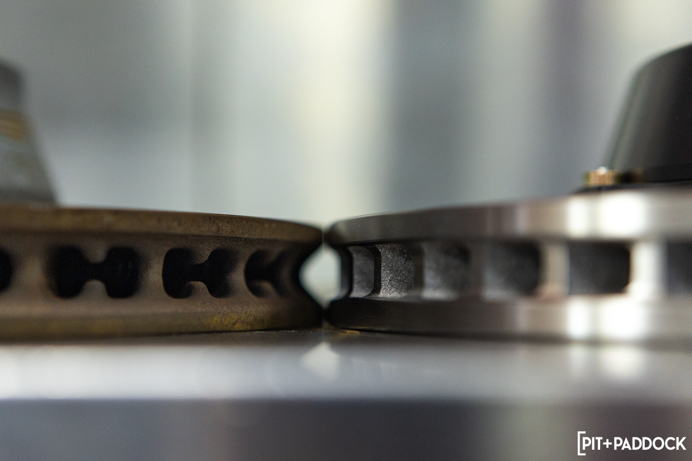 You’ll see plenty of slotted rotor patterns nowadays (i.e. bi-directional, j-hook, straight cut, and sinusoid curved), all of which offer unique benefits. GiroDisc’s curved slots inherently have better initial bite and a good balance between overall braking power and wear.