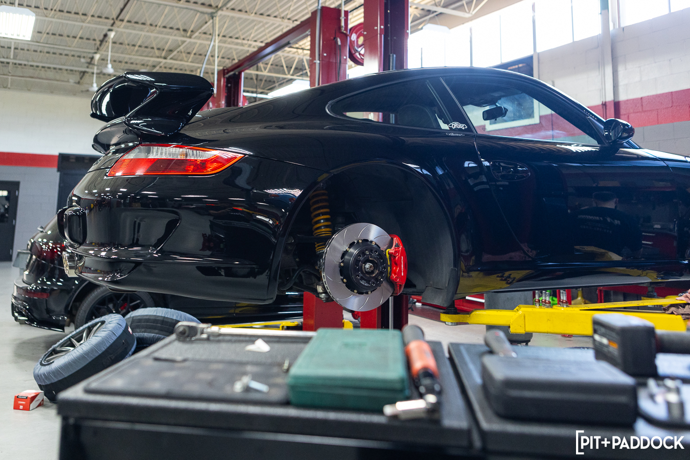 In the case of a 997.1 GT3, 6/4-piston monoblock calipers come standard on both steel and optional PCCB stoppers. Swapping these for aftermarket versions (effectively the same configuration) is relatively fruitless. Porsche’s robust factory calipers have made a perfect case for GiroDisc’s rotor solutions and it’s no secret why it’s one of the most devoted marques to the brand.