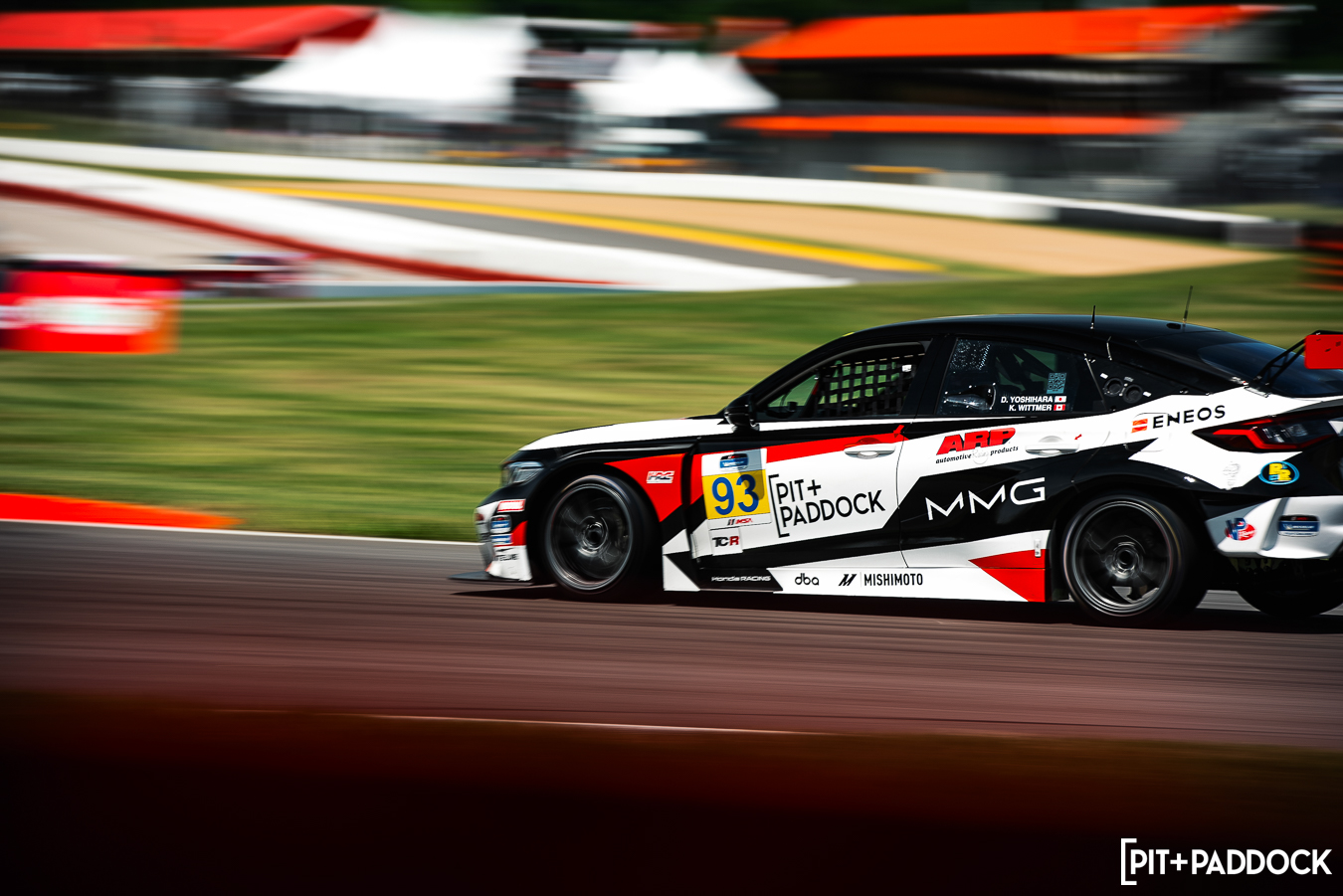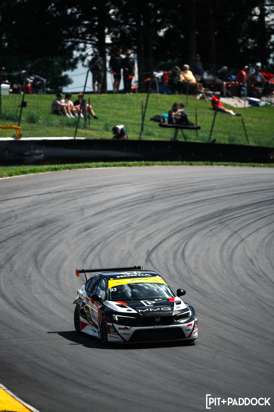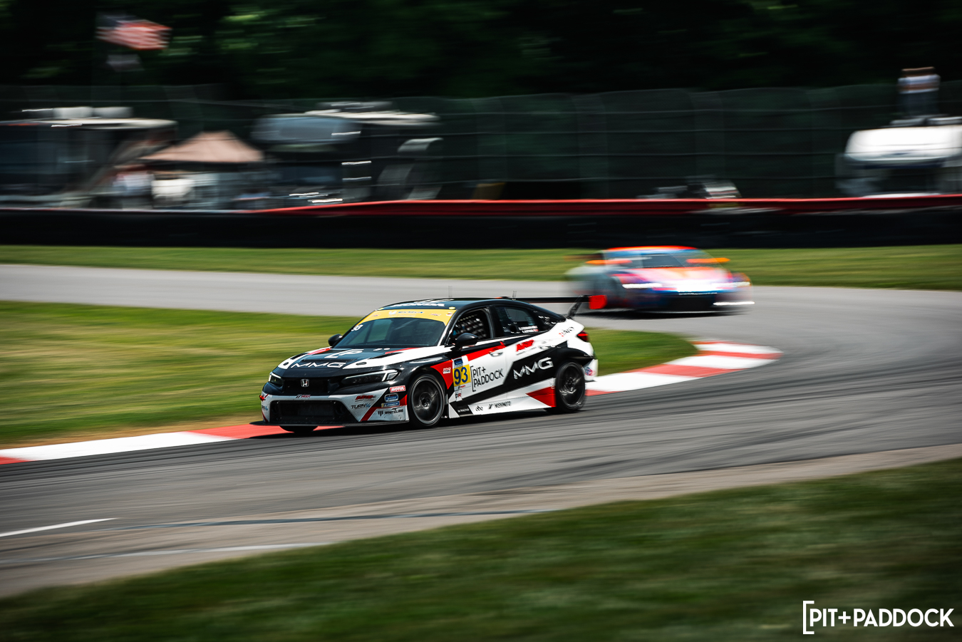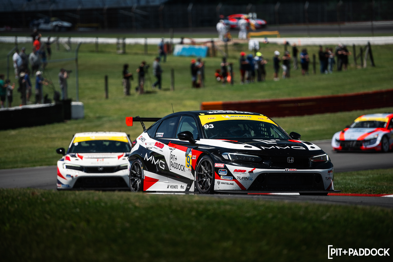 There’s nothing like starting a race from pole position. Behind the wheel of the Pit+Paddock FL5 Civic Type R TCR, Karl Wittmer put together a magical lap (1:27.103), which shattered the previous lap record by 1.7 seconds. It marked the second race in a row where a Montreal Motorsport Group (MMG) car took top honors in qualifying. Ortiz in the #6 sister MMG car was close behind and would start the race in P2. It’s an incredible boost for the team as the IMSA Michelin Pilot Challenge championship midpoint approaches. The accomplishment meant even more at a freshly-resurfaced Mid-Ohio; it’s well-known as one of the most competitive circuits in the United States and served as another testament to the squad’s meticulous race weekend preparation.