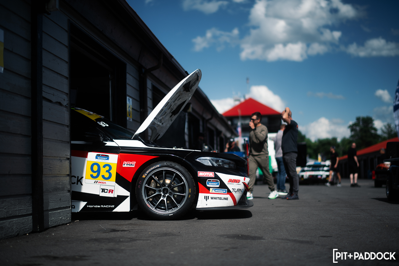 It was all business as usual until 1:30 when the #39 BMW was shunted hard into the wall in GS. The shove flung a variety of carbon fiber across the track and very quickly brought out the full safety car. Teams once again used the slowdown as a reason to pit, including Montreal Motorsport Group, who brought the #93 Pit+Paddock FL5 Civic Type R TCR in for a top-off, fresh tires, and a driver swap back to Wittmer for the last hour-long sprint. Everyone turned the wick up during the last twenty minutes and Wittmer showed us some of that special qualifying pace as he climbed up the order, eventually snatching P5 on the last lap.