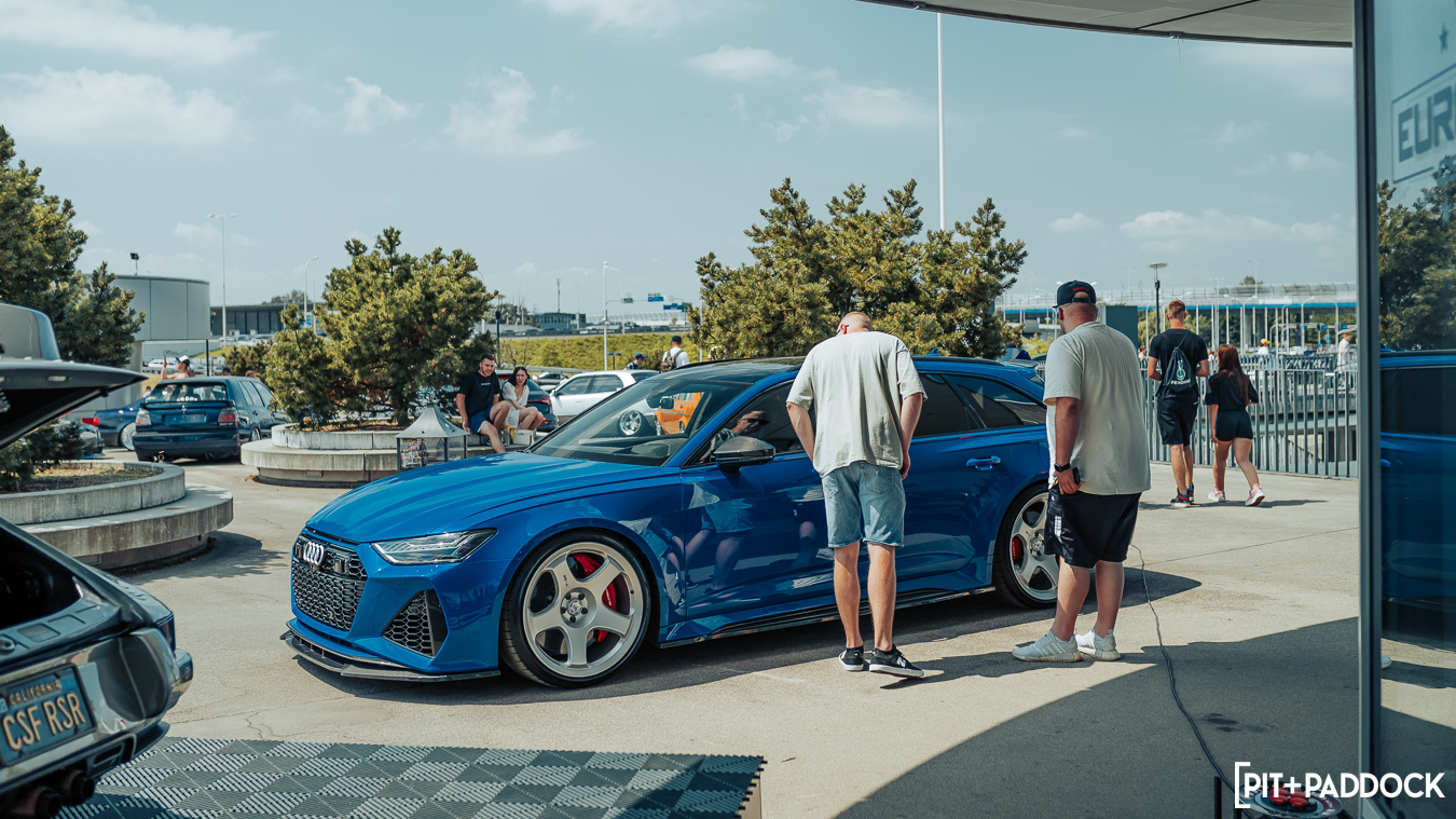 Also, it was HOT all weekend and our display area was truly COOLED by CSF with A/C pumping. A lot of people came to chill out with CSF and our crew. Outside, we had not only the 911 and E91 on display but brought some heavy hitters from around Europe through our network of partners. Absolute Motors / GP Products from the Netherlands brought its wild G87 M2 GT build and its C8 RS6 – RS2 tribute build to the show. Our good friends from R44 Performance (in the UK) brought it single turbo, bagged G81 M3 wagon, and our new distributor and host, PG Performance from Wroclaw Poland, brought out a widebody Novitec Urus that we displayed with the bumper off so you could see the upgraded CSF intercoolers.