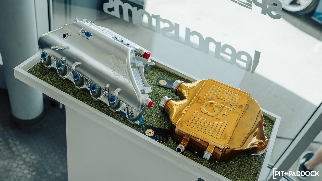Dolwani isn’t one to show up to an event without putting his best foot forward. Knowing the caliber of cars and displays ahead, he pulled out all the stops for this year’s showcase. The CSF 911 and Pit+Paddock x Bilstein E91 GTS Tribute were fitting flagships for CSF’s six-car array, which flanked a high-end boutique full of the brand’s accouterments.