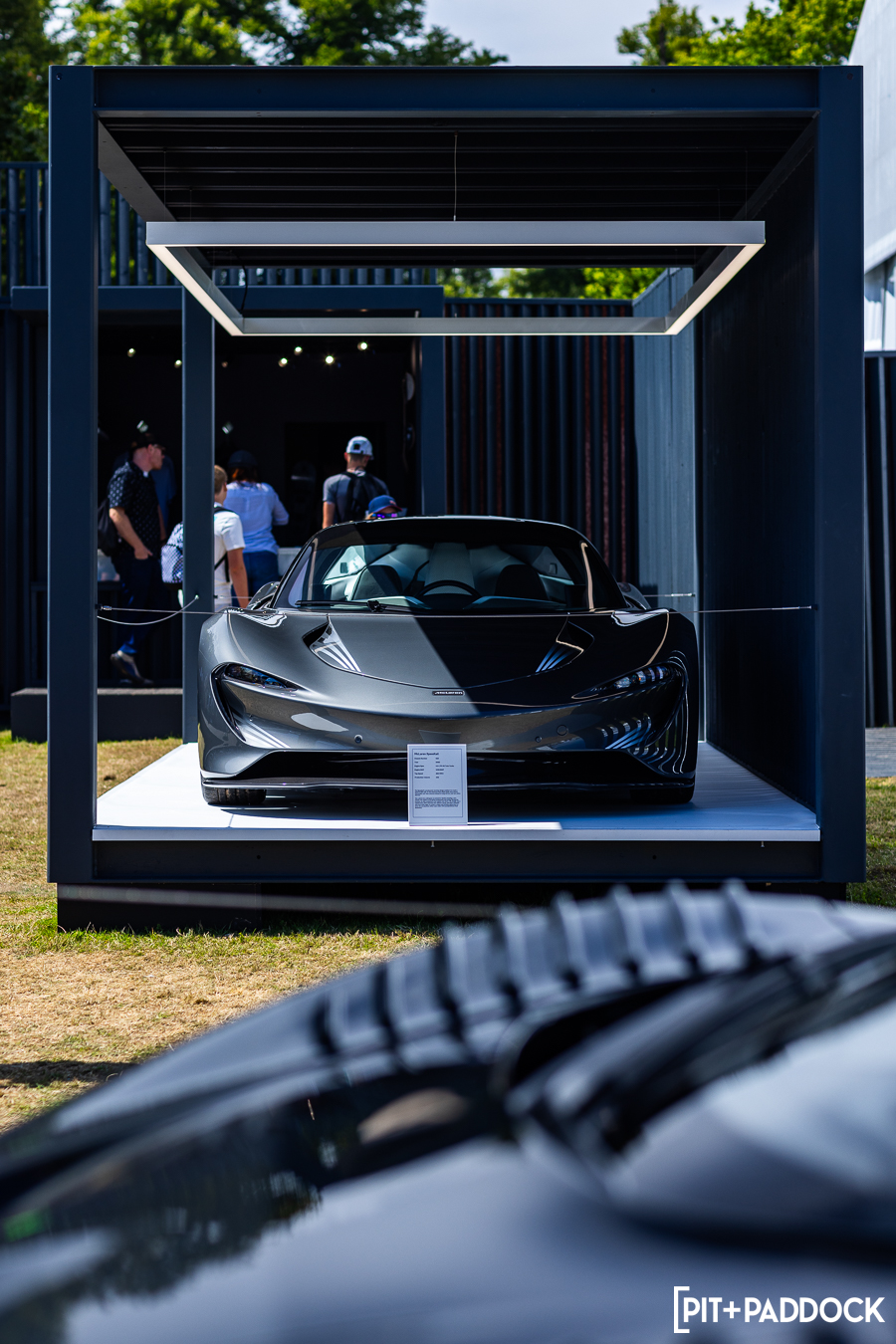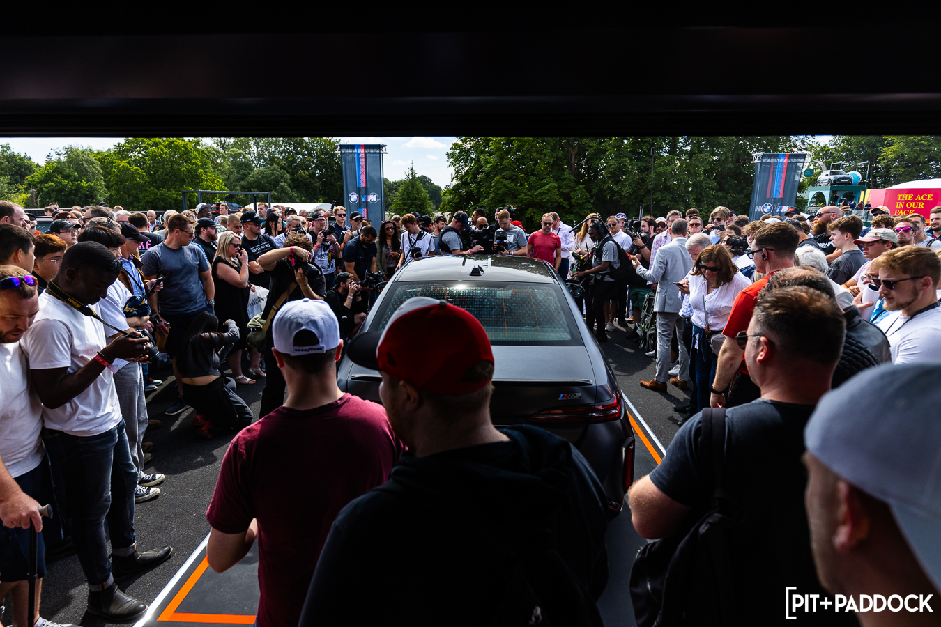 Taking a more casual stroll through the Goodwood grounds will also allow you to spot plenty of cars precariously tucked under fitted covers. While some are strategically spared from Goodwood’s unpredictable weather, the rest are reserved for scheduled unveilings throughout the weekend. Indeed, traditional car shows have been in decline for years, so more OE manufacturers have used other means, like the Festival of Speed, as a viable venue to unveil their latest creations. Avid BMW fans have been eagerly anticipating the brand’s latest M5—the G90—and Goodwood was the first opportunity for Londoners to see the car in person. Inside BMW’s multi-level display, Vicki Butler Henderson, the ex-Fifth Gear host, was on-site with the Duke of Richmond to introduce the super saloon to a smattering of media, influencers, and FOS attendees.