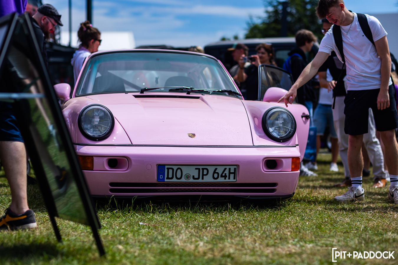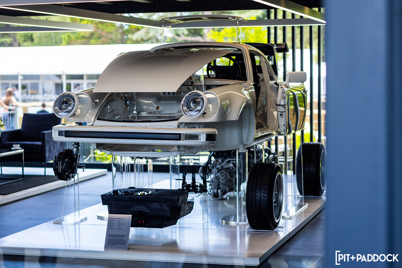 Once you finally get past the check in gate, you’ll be tempted to rush toward the hill climb track. Don’t. It’s better to stop and take in whatever is in front of you because it’s likely that you may not come back to it later. In our case, the “House of Porsche” display was a fortuitous first for us. The marque put its electric models front and center, including the latest Macan E. Past the pop-up Porsche cafe and down a few steps was a corral full of Porsches, a reminder that the brand’s legacy is just as important as its climate-conscious innovations.