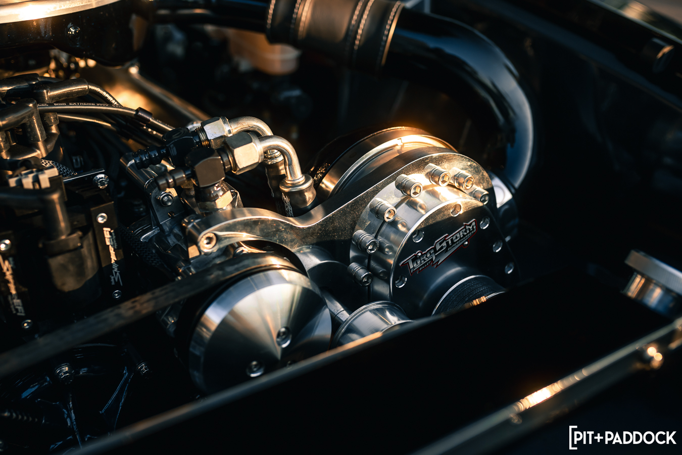 The front accessory drive is something very special with Torqstorm’s twin centrifugal superchargers, which came complete with everything needed. The twin charger setup allowed me to mimic the really cool ‘twin snorkel’ intake from the ‘85 5.0 Mustang.