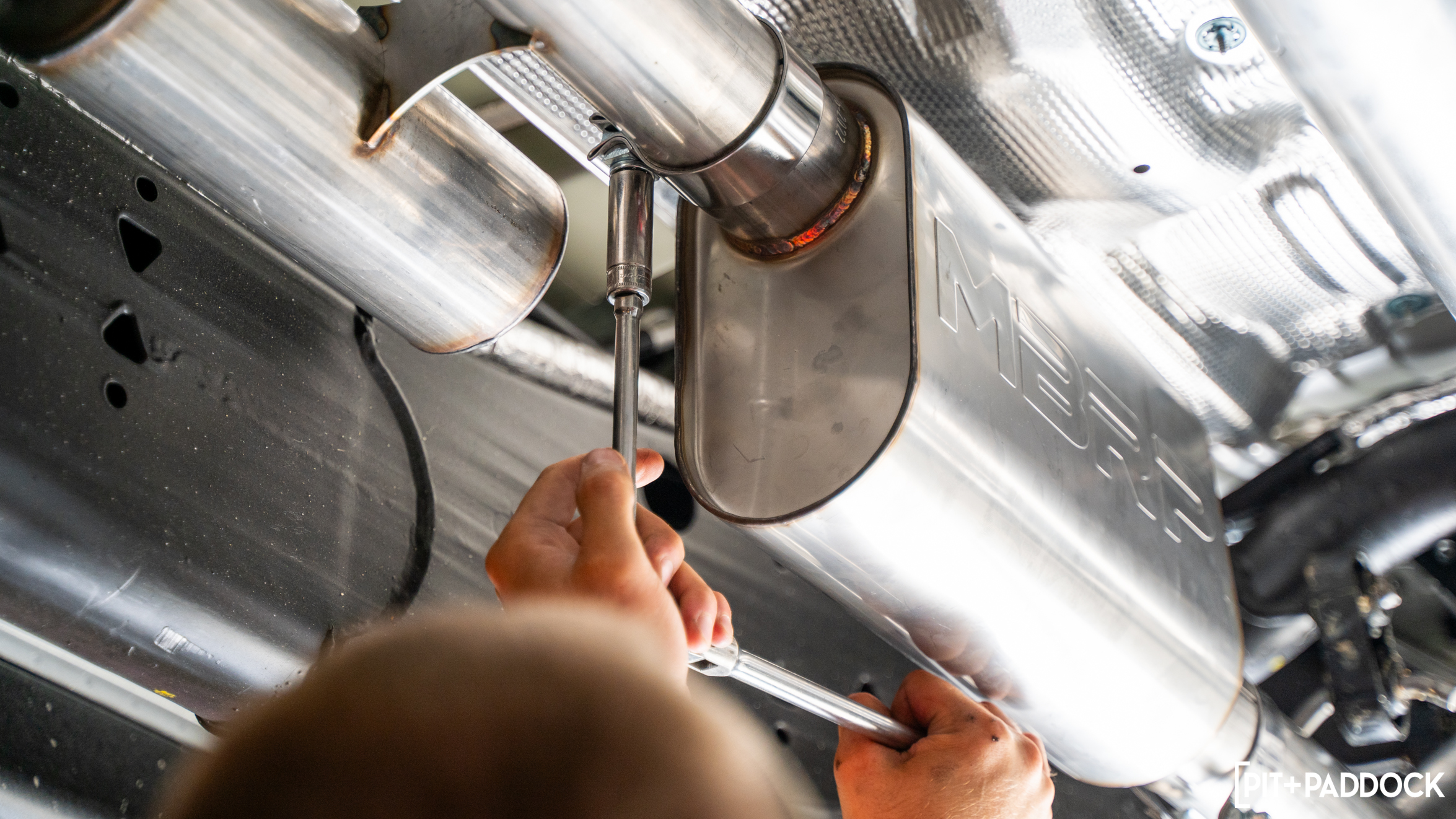 Speaking of tips, you won’t need too many to put this exhaust on. The only thing that we did was swivel the rear sway bar for clearance to remove the OEM exhaust. Other than that, installing the MBRP Tour Profile Armor Pro exhaust was straightforward because this plug-and-play exhaust was engineered with superb fit and finish in mind. Just make sure that you slide the clamps onto the connecting pipes before you connect them to the muffler. Easy.