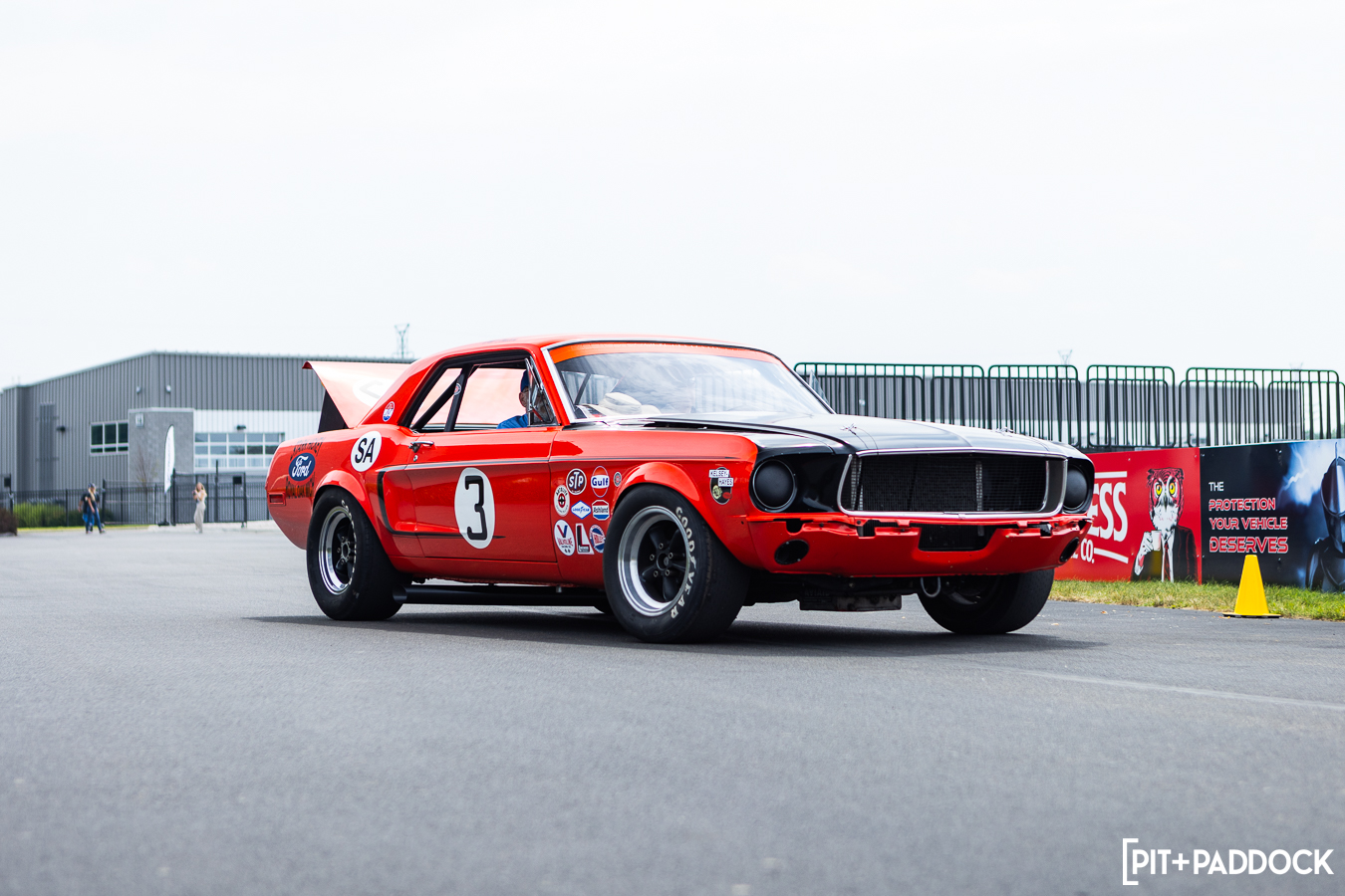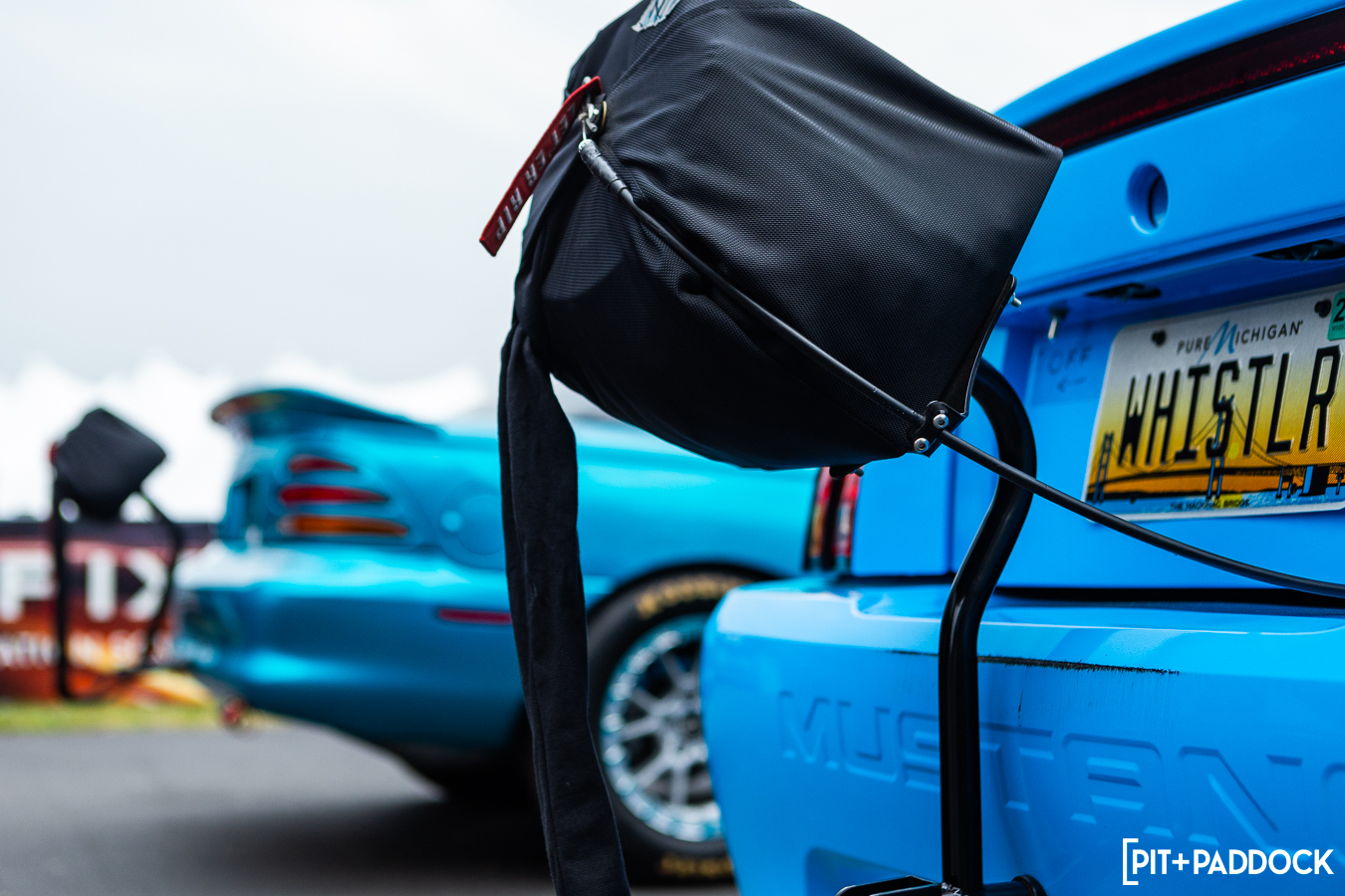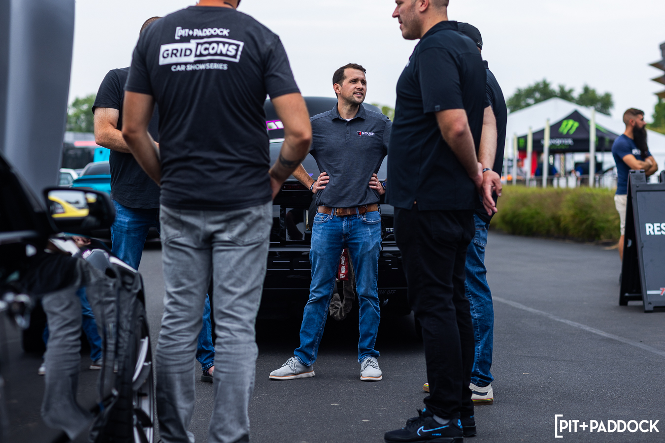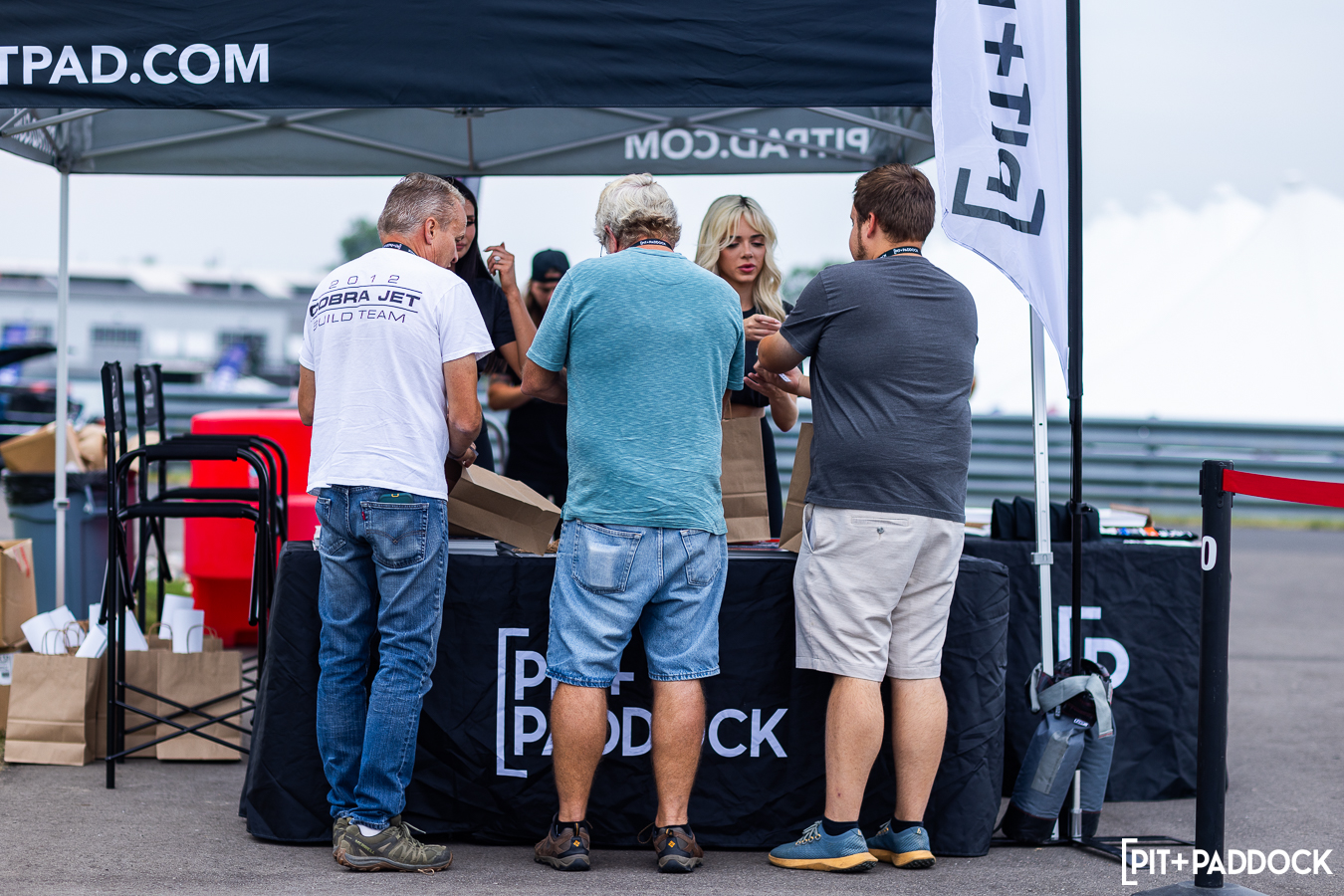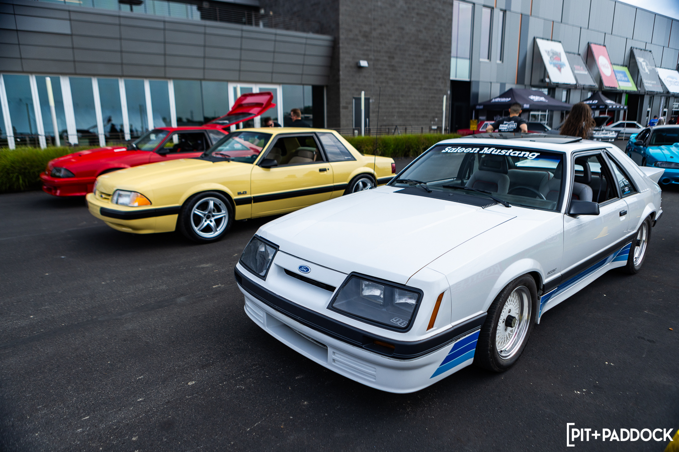 At the beginning of Pit+Paddock, we were admittedly very intentional about integrating displays that looked like starting grids; it helped us drive the point home about where our brand intersected. Since then, we can admit that it just looks incredibly cool. We lined the Mustangs up by generation—old to new—so that when spectators rolled through the gates, it’d be their first impression.