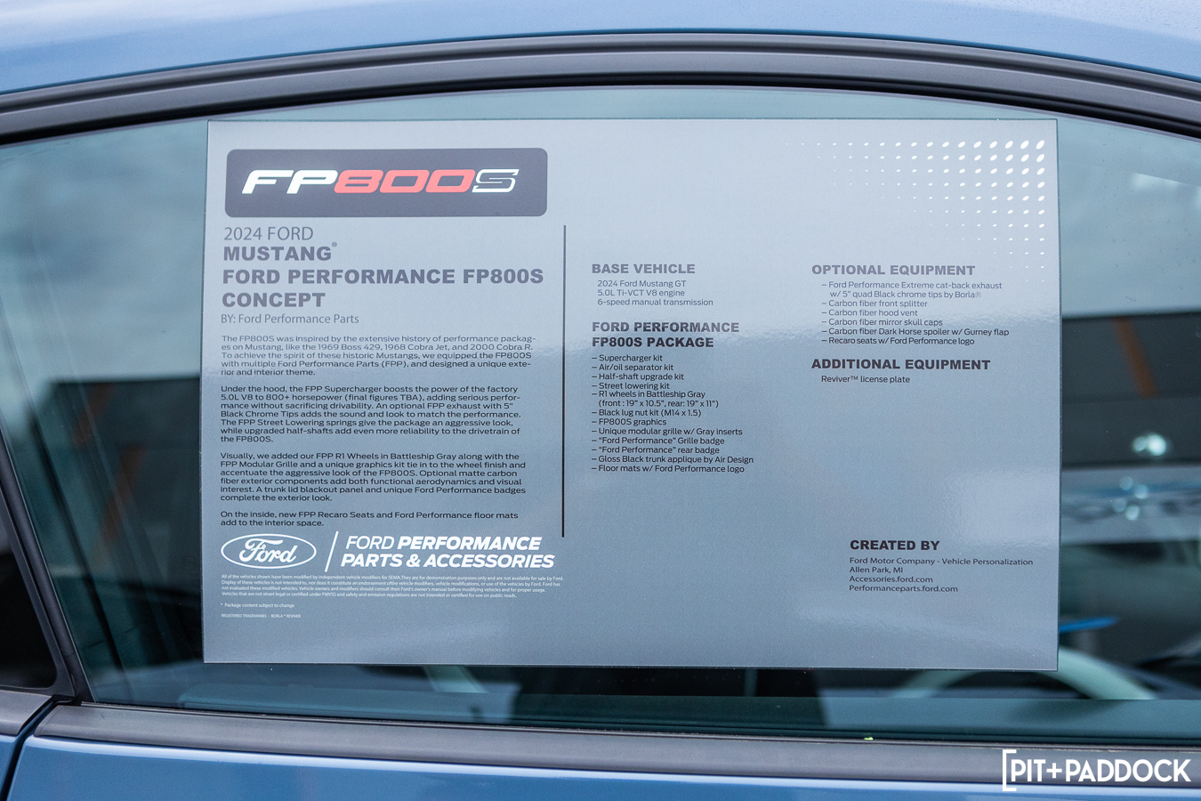 Ford Performance has been fun to watch over the last handful of years. It picked up a lot of cues from the aftermarket and developed a rather tasty menu of upgrades that Mustang owners can buy without spoiling the factory warranty. The FP800S Concept was parked next to a Shelby GT500—its benchmark for performance—and showed how enthusiasts could modify their Mustangs directly from the Ford Performance catalog. This car had everything Ford Performance had to offer: a Gen-6 Whipple supercharger, 92mm throttle body, oil separator, beefier half-shafts, R1 19” wheels, and a bunch of aero upgrades.