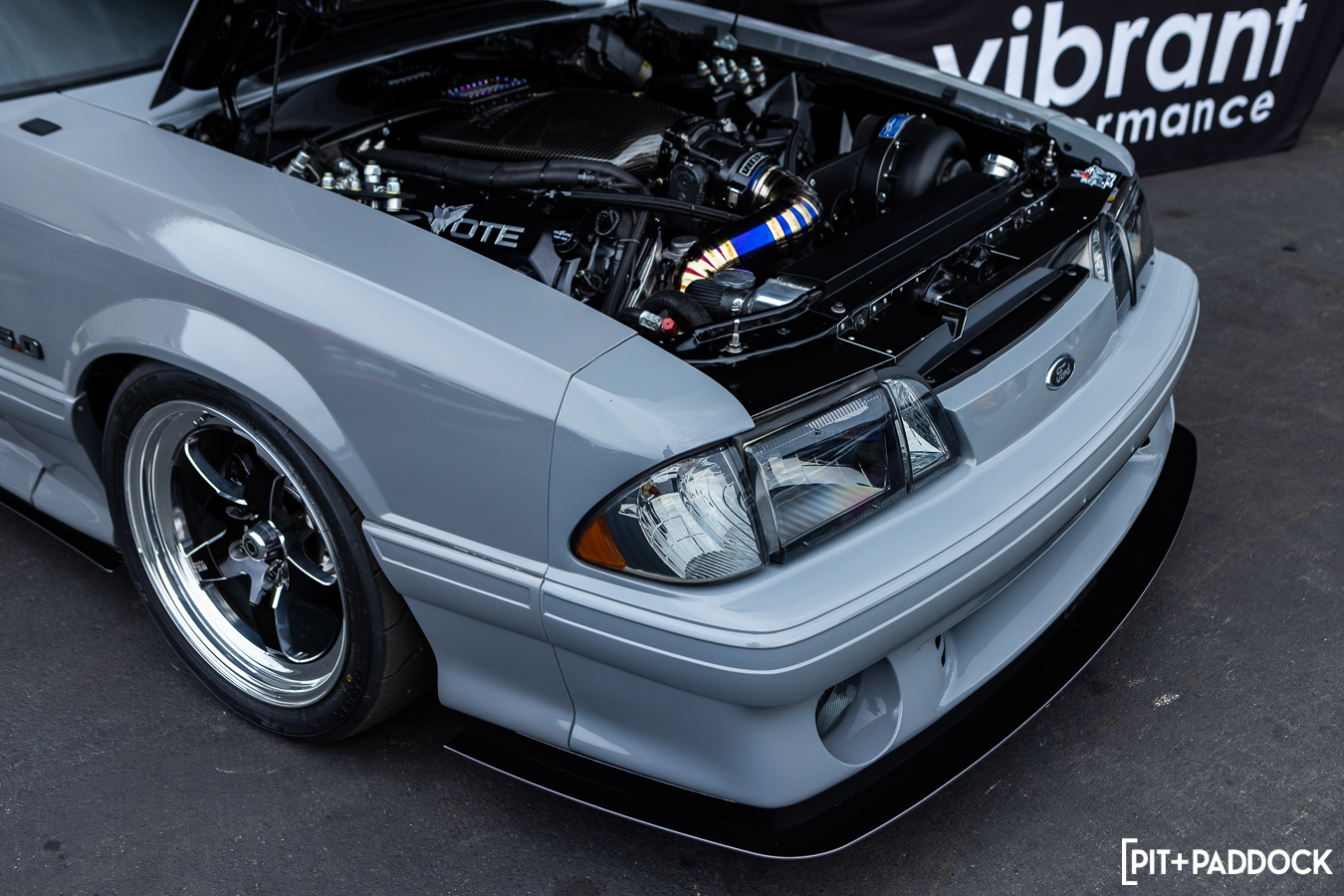 In contrast to other shows where vendors are set on a remote island, Vibrant Performance, Weld Racing, and MBRP were all part of the main drag. This allowed every spectator to interact organically with each brand, its products, and the super cool cars that each brought to the show. Ross Wallen’s Gloss Rock Grey turbocharged Fox Body in front of the Vibrant Performance booth was easily one of my favorites. The Weld Racing Ventura S104s were perfectly spec’d with that mirror-polished lip. Hard to beat a five-spoke on the Fox Body chassis.