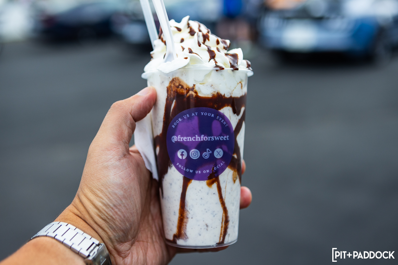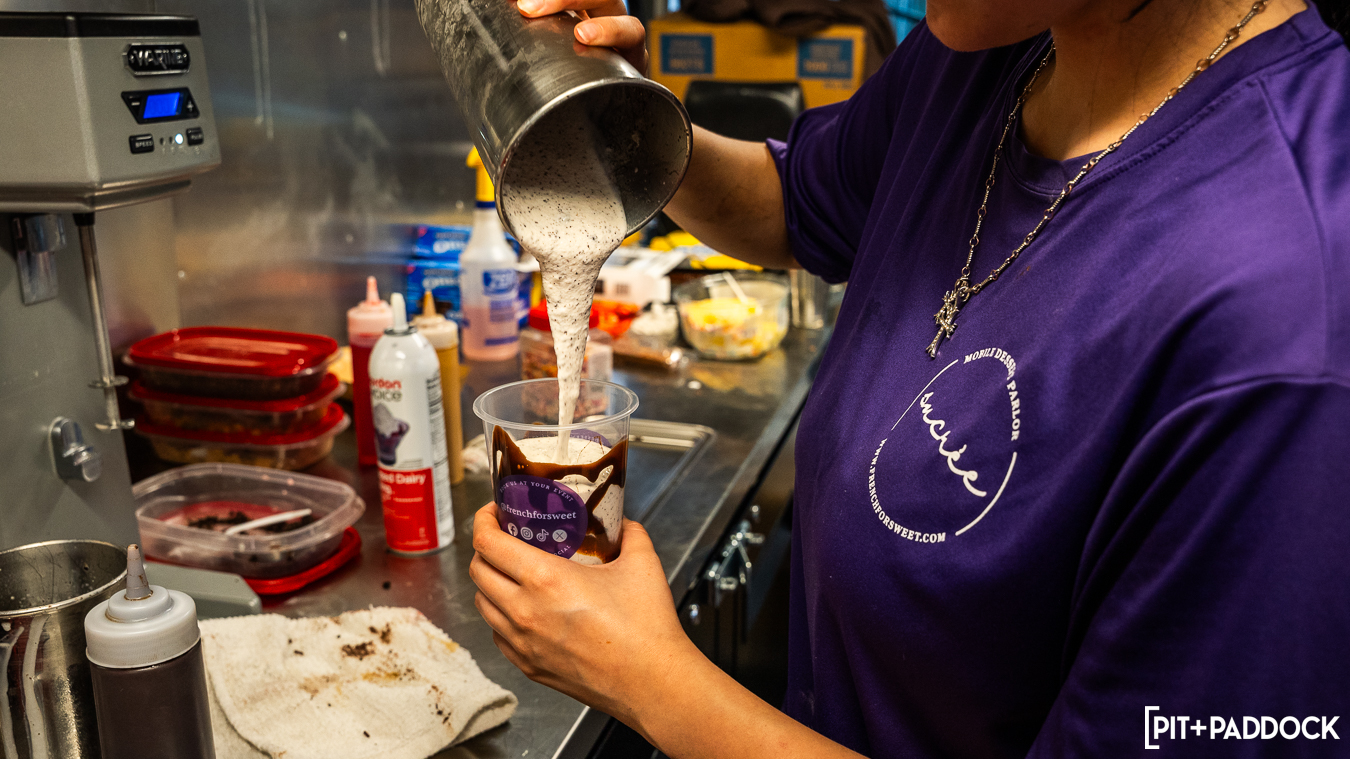 After all that walking around, Grid Icons guests found themselves drawn to the two food trucks on-site. Sucrée (French for sweet) made sure Justin and I could cool off from shooting. As someone who misses the Portillos chocolate cake shake, I highly recommend Sucrée’s “Bumpy Cake” as the closest alternative. With our blood sugar replenished, we headed back inside the M1 Concourse ballroom for the hero car walkthroughs.