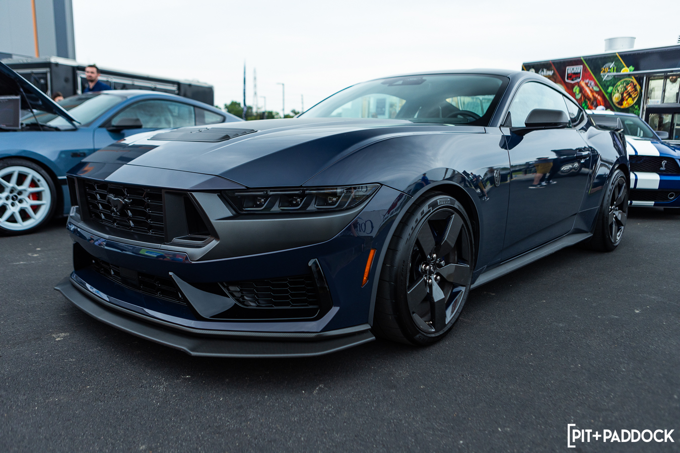 The rear spoiler was killer and lifted directly from the Dark Horse. Conveniently enough, there was one parked on the other side of the GT500 so that we could compare and contrast each model with a fine-toothed comb. It was the first time I’d actually seen one of these in person. The matte accents on the bumper and hood coordinate well with the matte aero add-ons, but I was most intrigued by the two-tone carbon fiber/blue Kevlar wheels—it was cool to see the latest iteration here after Ford debuted carbon wheels on the “old” GT350R. Thank you, Ford Performance, for coming out so strong for us. It meant so much to have the marque support an enthusiast-driven show and see an OE who fully understands the modern enthusiast.