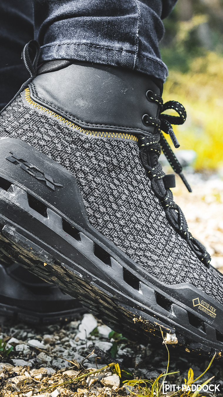 The TCX naming convention makes it pretty easy to understand where its shoes or boots will excel. Like many of its footwear offerings, the TCX Climatrek Surround® shoes (20179T7156G-619), which have strategic reinforcements on the ankle, toe, and heel, are designed to offer the perfect combination of protection when you’re riding your bike and versatility when you come off it. But the Climatrek Surround® shines in two important ways: among the elements and across seasons.