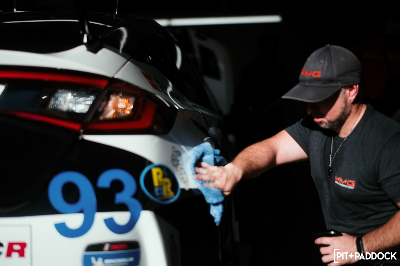 That momentum was sustained once the team arrived in Indianapolis. Yoshihara and Wittmer put the #93 Pit+Paddock Civic Type R TCR through its paces during both practice sessions while MMG tweaked the setup for the challenge ahead. Once Yoshihara crossed the finish line for the first time in qualifying, it was clear that we’d, once again, be contenders for top honors. Yoshihara claimed pole position by the session’s end—his second and fifth for the Honda Racing-powered team in the 2024 season.