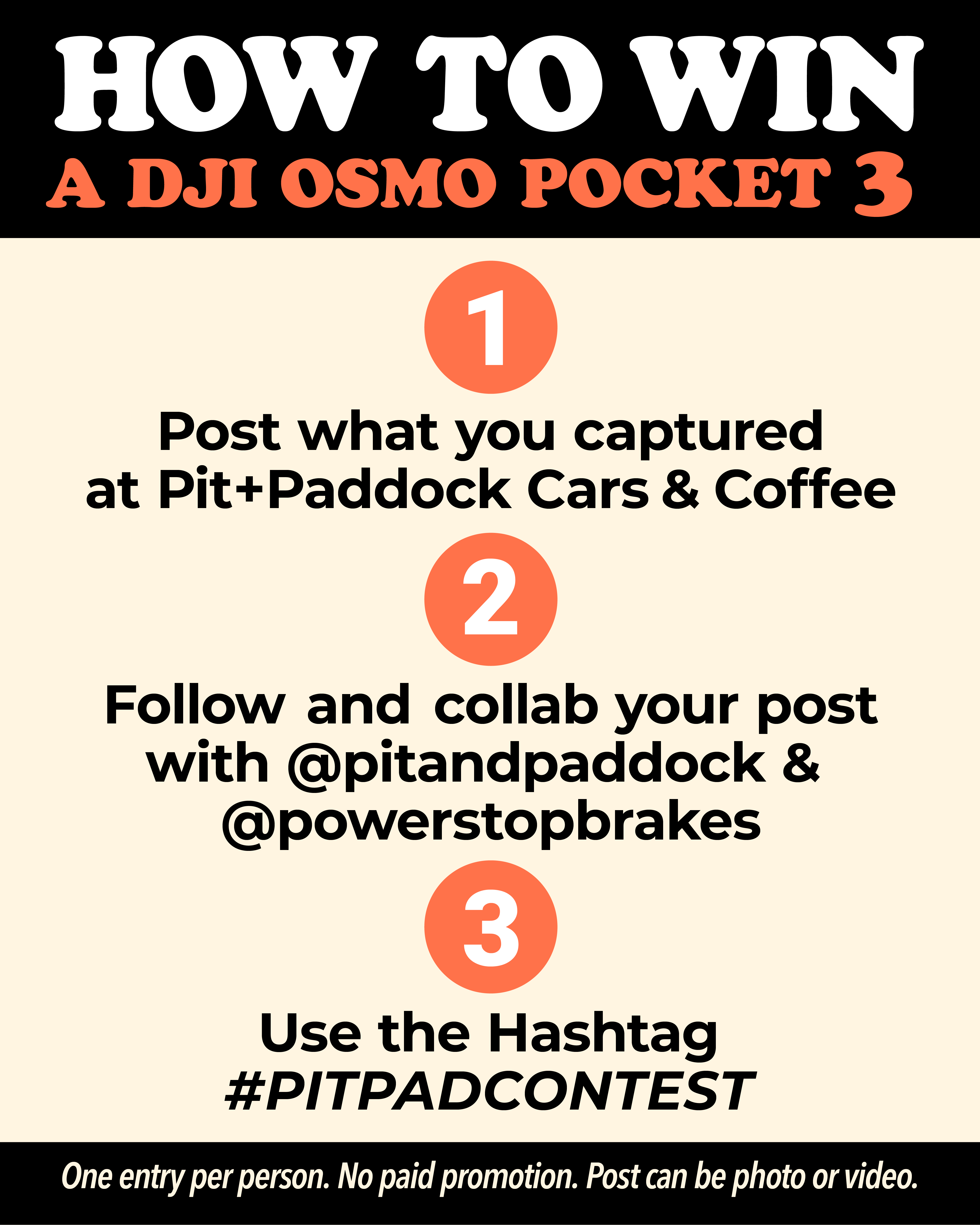 It’s our best prize to date…a DJI Osmo Pocket 3, one of the hottest pieces of content creation equipment out there right now, and something that all of us at Pit+Paddock have been itching to add to our personal camera bags. But, we couldn’t have done this alone. PowerStop, one of the leading aftermarket brake manufacturers in Turn 14 Distribution’s inventory took notice of the contest’s growing popularity and stepped in to help bolster our prize pool.