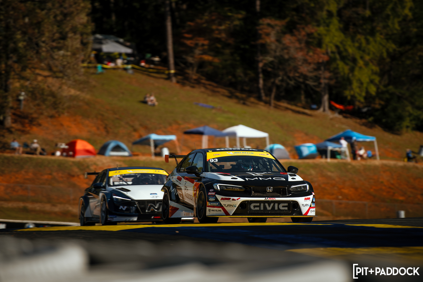 A myriad of quotes are fitting to describe Montreal Motorsport Group’s (MMG) inaugural year in IMSA’s Michelin Pilot Challenge. Still, perhaps the most fitting is: “It ain’t over til it’s over,” one of a few gems from American baseball legend Yogi Berra. He first spoke the phrase about baseball’s 1973 National League pennant race. His team—the New York Mets—appeared well out of contention but managed to win the division title at the end of the season. Sure, MMG didn’t copy this feat to the “T,” but consider that baseball has 162 games per season while the IMPC championship calendar only has ten. To compare apples to apples, the #93 Pit+Paddock Civic Type R TCR scored 1,500 points during the second half of the season—the second-highest tally in the class and a shocking 200 more than the series champion. The Fox Factory 120 at Road Atlanta was a fitting battleground to nab the remaining points on the table.