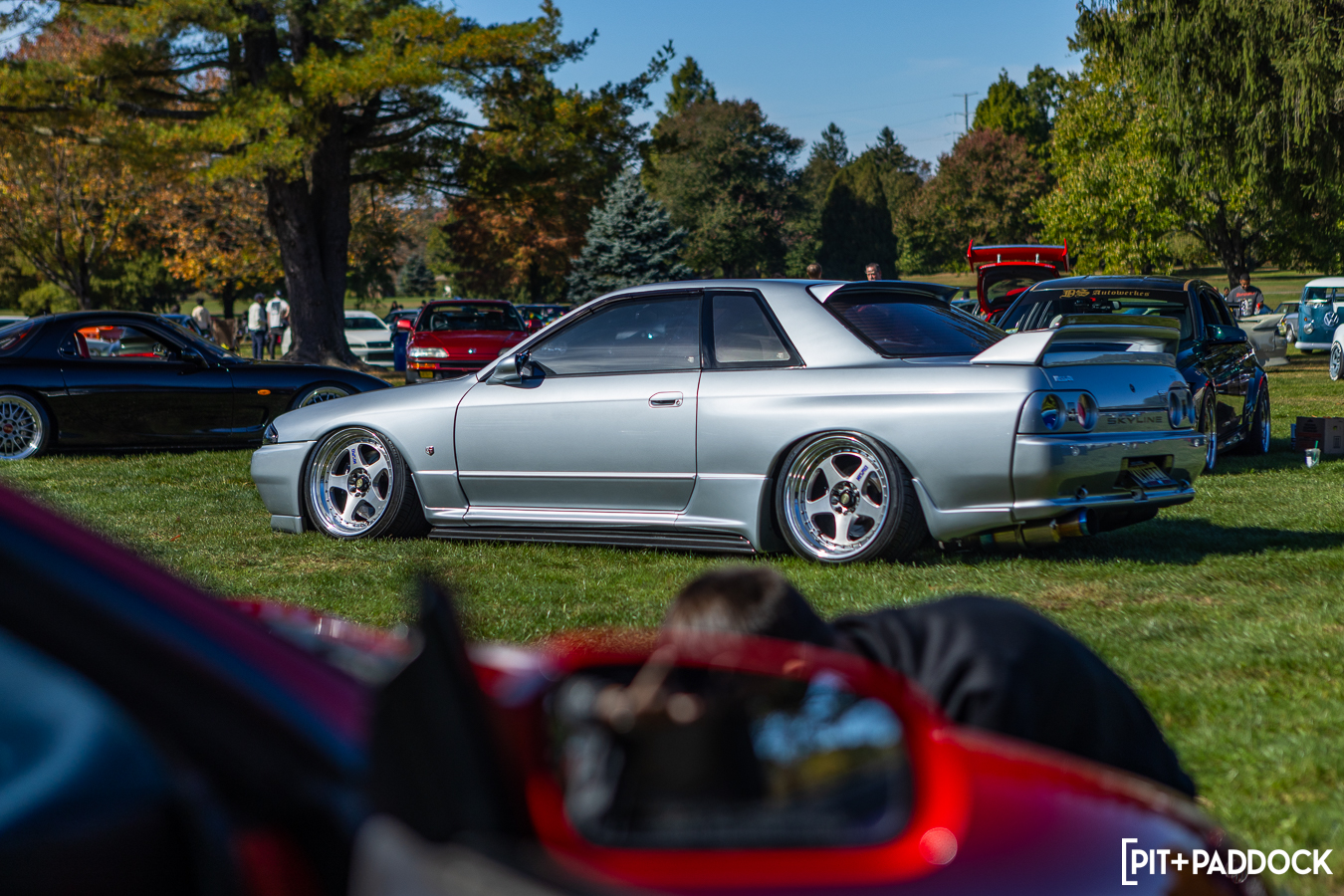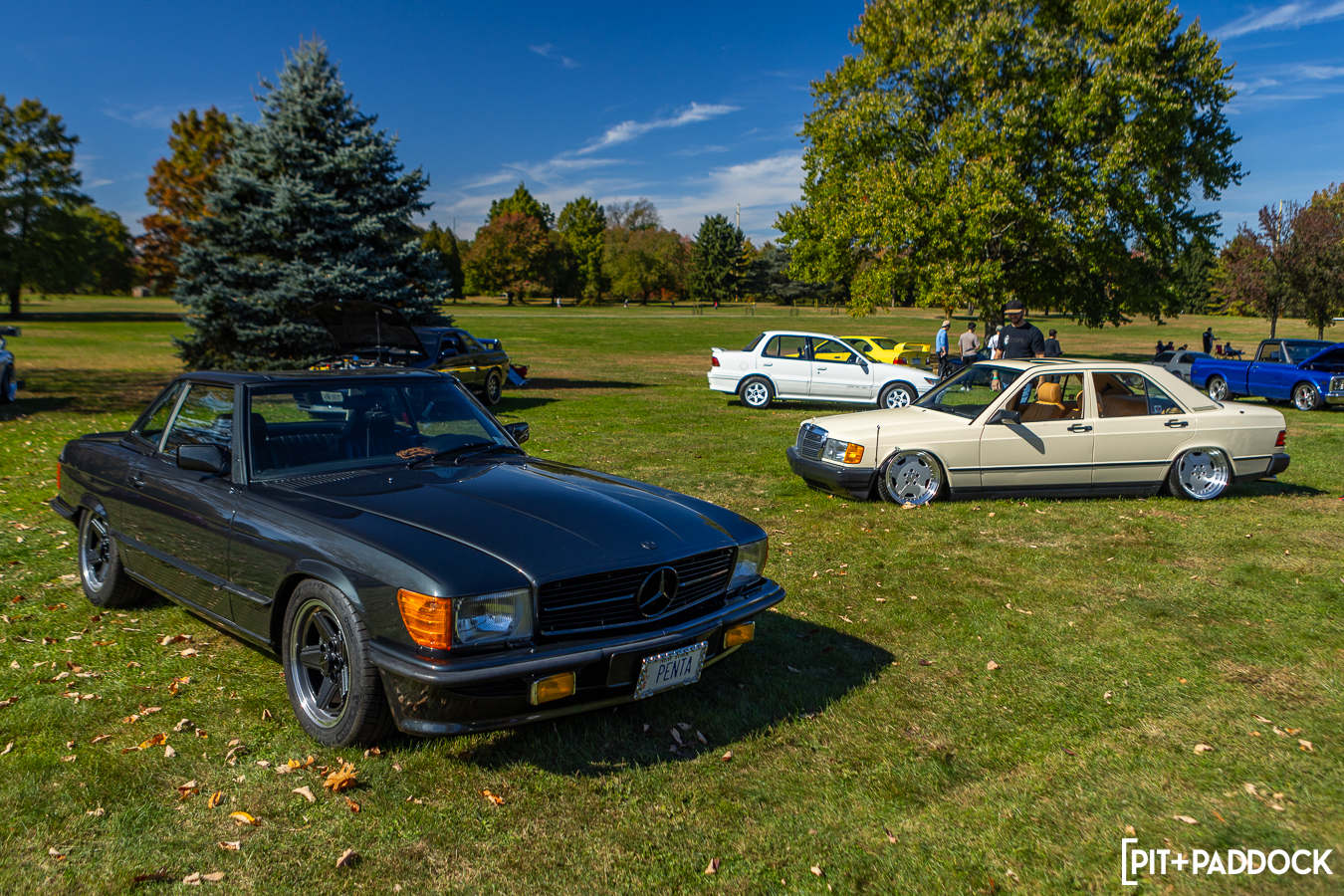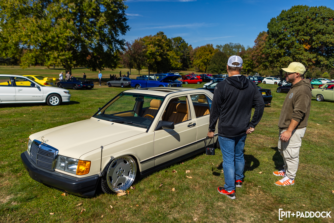 That realization made me take in the event with a wider lens, hoping to catch interesting groupings that’d be easy to miss if you hyperfocused on single cars at a time. A trio of really clean E36 M3s were the first to catch my eye and reminded me that this chassis looks so good in virtually every color and style. You can’t say that about too many cars. An R107 SL on Pentas and a creme 190E on AMG multi-piece monoblocks made for an offbeat pair that I thoroughly appreciated, too. And I confess to having a secret affinity for the Y33 (Cima) chassis. Seeing it with a VIP-styled LS and an R33 GT-R made me want something to cruise in low and slow.