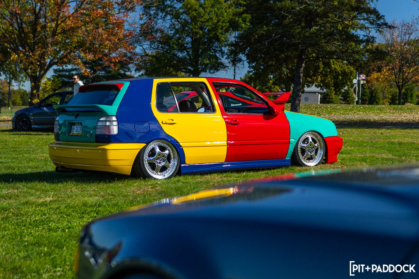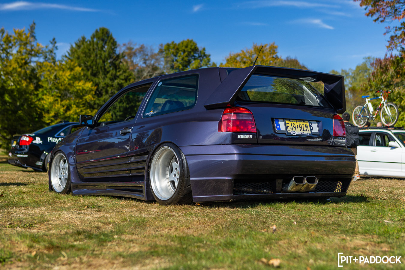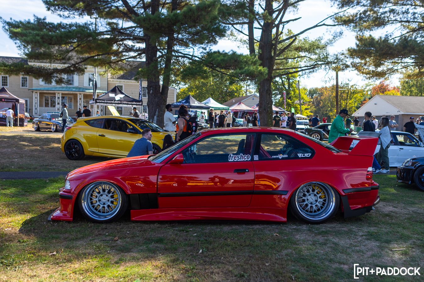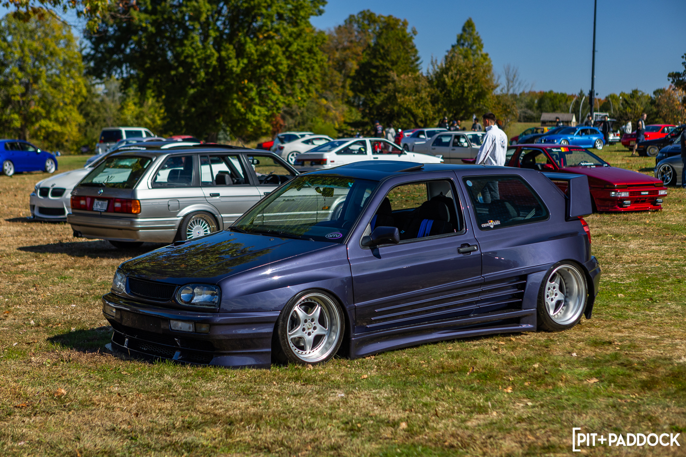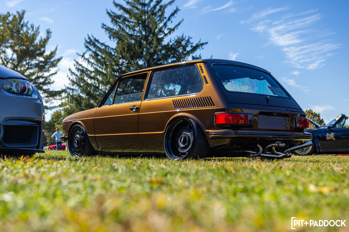 Still, there were plenty of cars that I’d seldom seen—even on the internet. I couldn’t tell you the first thing about this trio of Volkswagens, but admittedly, I stared at each of them far too long before I was pulled away to grab lunch. Any VW heads who can school me on these, I’m all ears. This was the first time I’d ever seen or heard of a VW Brasilia. This one had a wild exhaust setup—that flirted dangerously close to the pavement—and a perfect set of Rotiform BKKs. The AMS Autowerks Rieger widebody hatch was unapologetically Euro, and I loved it. The loud paint, deep dish wheels, DTM exhaust, big wing, and the 348-style strakes on the kit made the car look like it should’ve been on the cover of Max Power magazine.