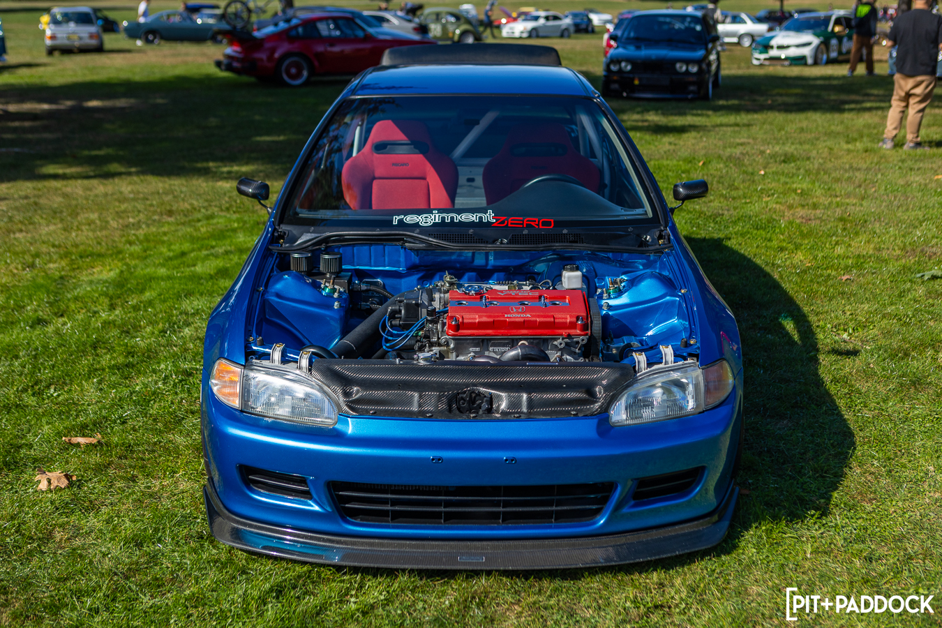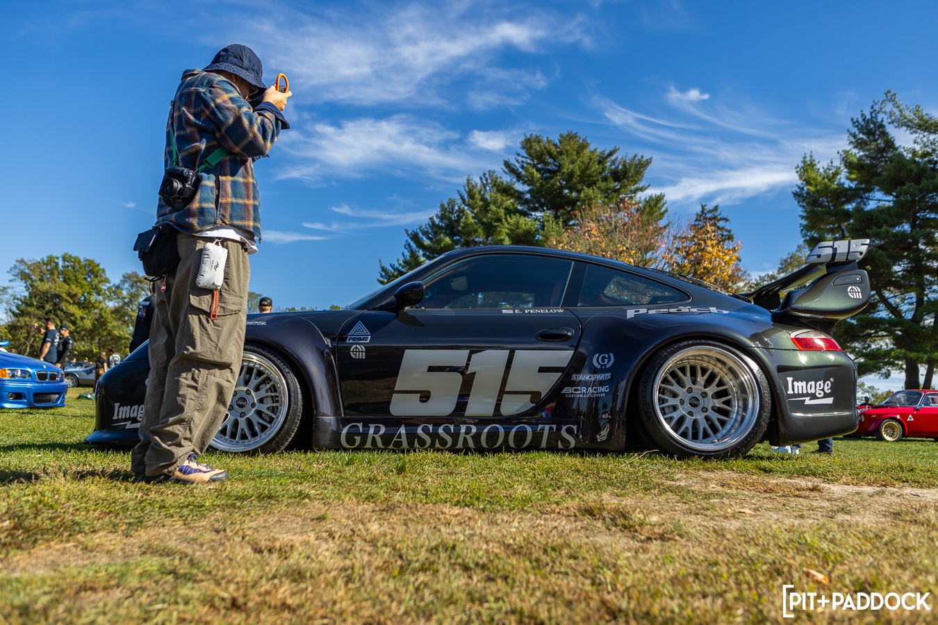Part of creating that standard means breaking down barriers between car communities. Despite the car community’s natural taste or loyalist factions, the automotive lifestyle (and the top-quality builds that come out of it) is all-encompassing. As a result, Euros, JDM, low-riders, vans, Kei cars, and race cars all had a deserved place on the Grassroots Edition field. The spread wasn’t segmented in any formal way, but somehow, it still appeared well-planned instead of just a “park wherever” spattering. I rolled into the event with my friend Tom, and our 997 pairing was flanked by two lowriders with serious hydraulics. The contrast couldn’t have been greater—both of their cars contorted and reaching for the sky—while Tom and I were hunkered down P-cars on the grass.