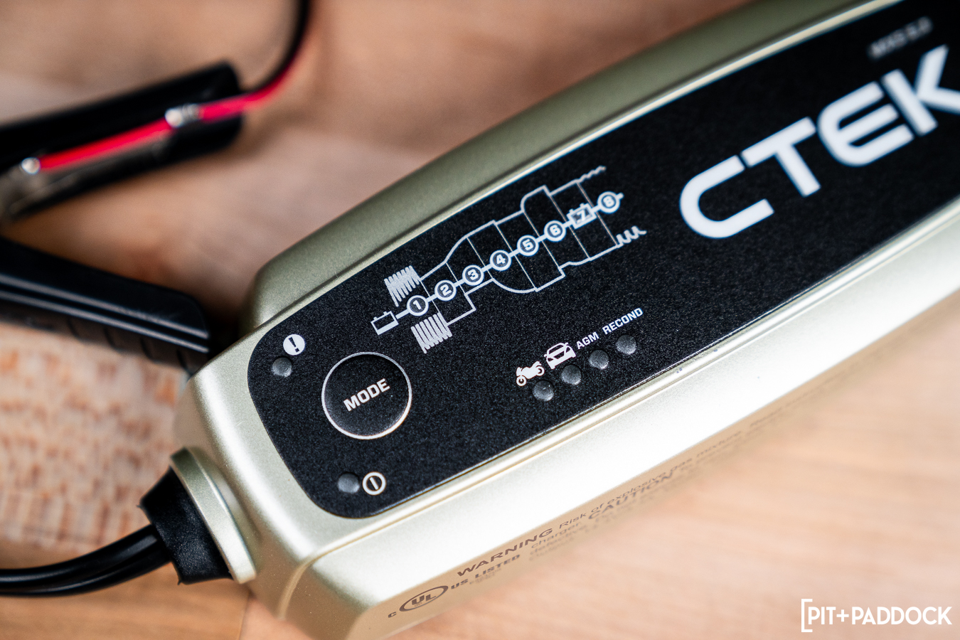The MXS 5.0 (40-206) is the Vans Old Skool Pro equivalent—a Sk8 Hi with the PopCush interior. It’s one of CTEK’s most popular models and has taken home several well-deserved awards to prove it. Like the shoe, you’ll have several of these at home—I have four—because they go with everything, and they are a known entity for lead-acid battery types. On the technical side, you’ll spot a “12V 5A” on the front of these MXS 5.0 chargers, which denotes its voltage compatibility and flow rate, respectively, and it touts additional maintenance capability up to 160Ah. Basically, it’s more than enough to trickle charge your car or bike, which you can select via the big MODE button on the device.