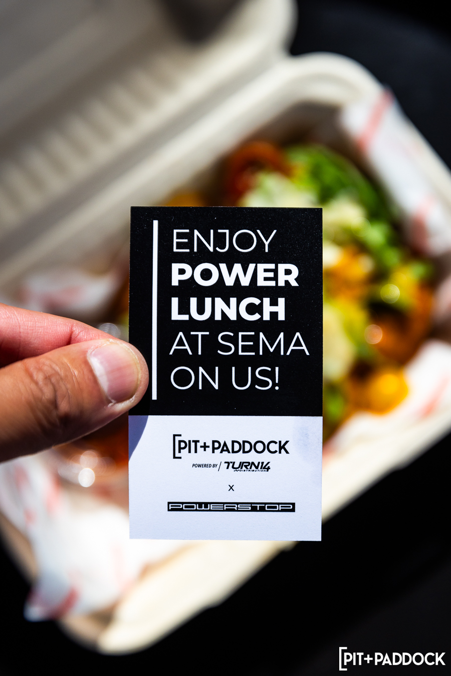 - Pit+Paddock (powered by Turn 14 Distribution) Power Lunch, presented by Powerstop Brakes, is our SEMA meal service where our staff members serve lunch to our valued partners and media guests.