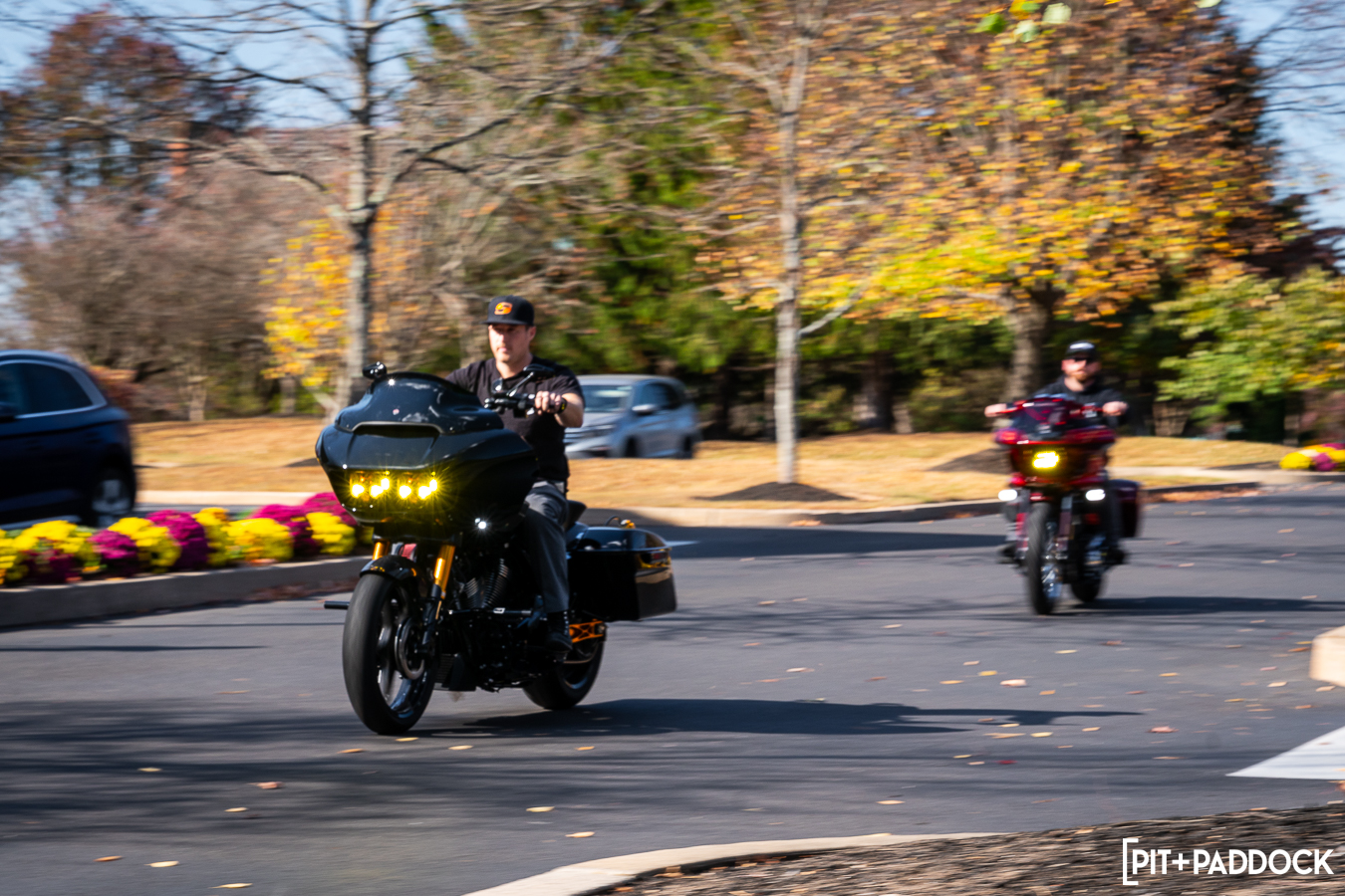 The two bikes are very different, and even within Turn 14 Distribution’s walls, it seems the crowd is split. I’d have to take the Road Glide, I think, but my answer might change if you ask me tomorrow. The Road Glide just looks like such a bruiser—comfortable to soak up miles in style, yet incredibly fast once you hit that perfect stretch of open pavement. I’m usually not a big carbon fiber guy, but it adds texture to the monochromatic feel of this bike. Truthfully, it looks as intimidating as I’d be to actually ride it—just like the most beloved 80s or 90s supercar—and I think that bit of theater matters. Chatting with Mike, he’s proud to say that this Road Glide became the no-compromise, all-out performance build he sought to build from the very beginning, and it’s the latest crown jewel in a very impressive portfolio.