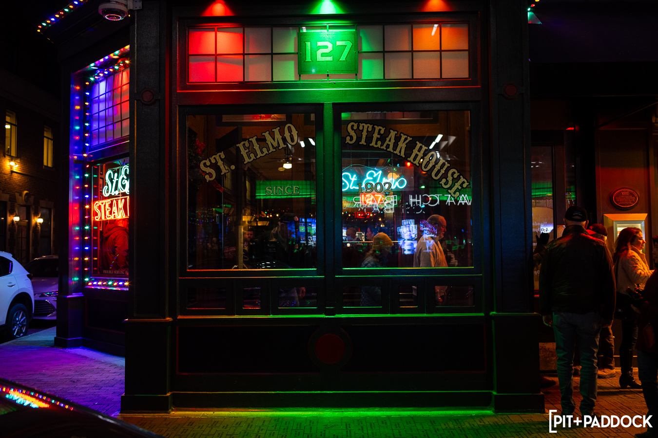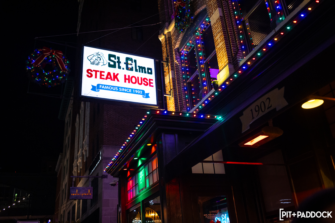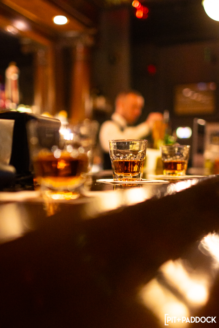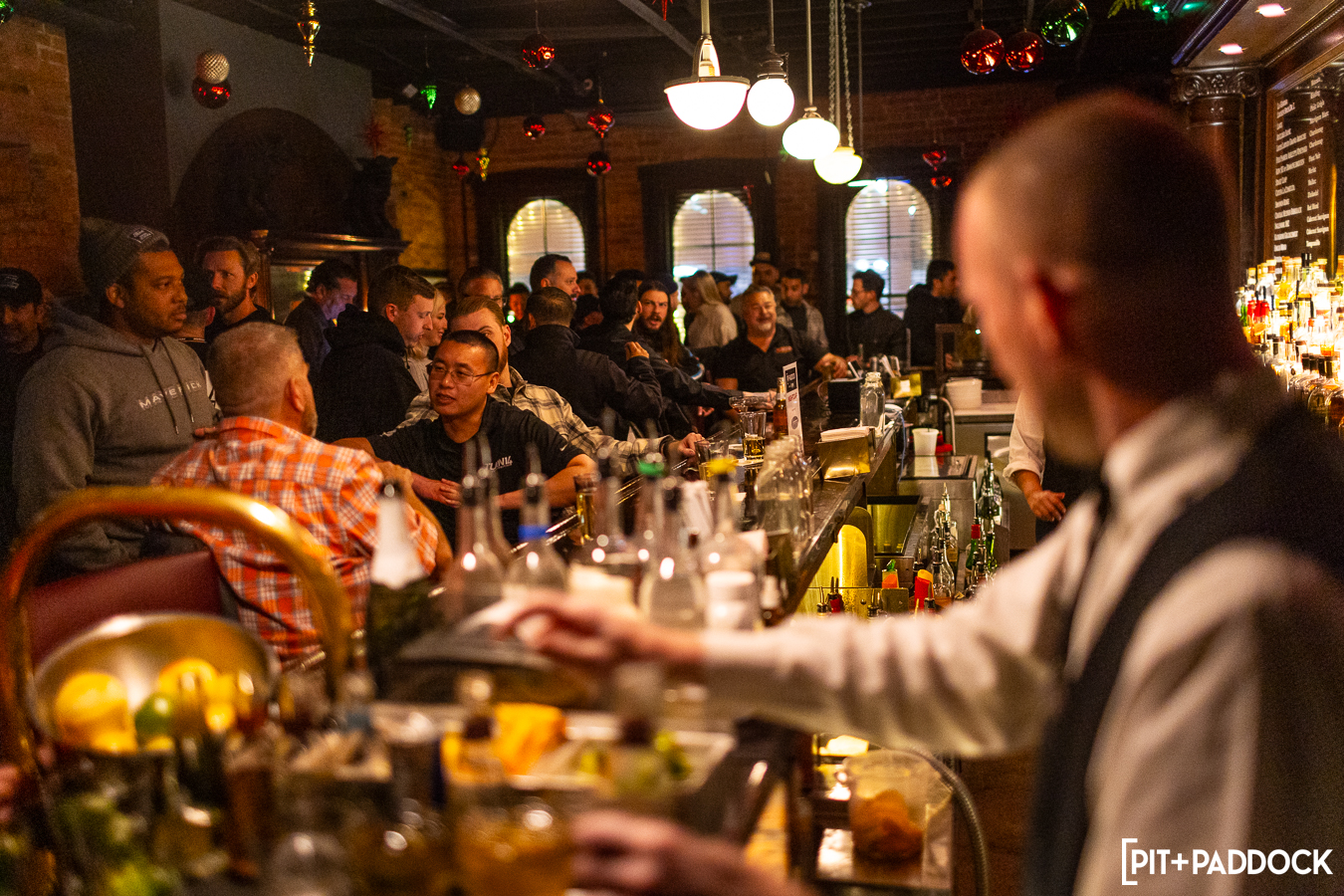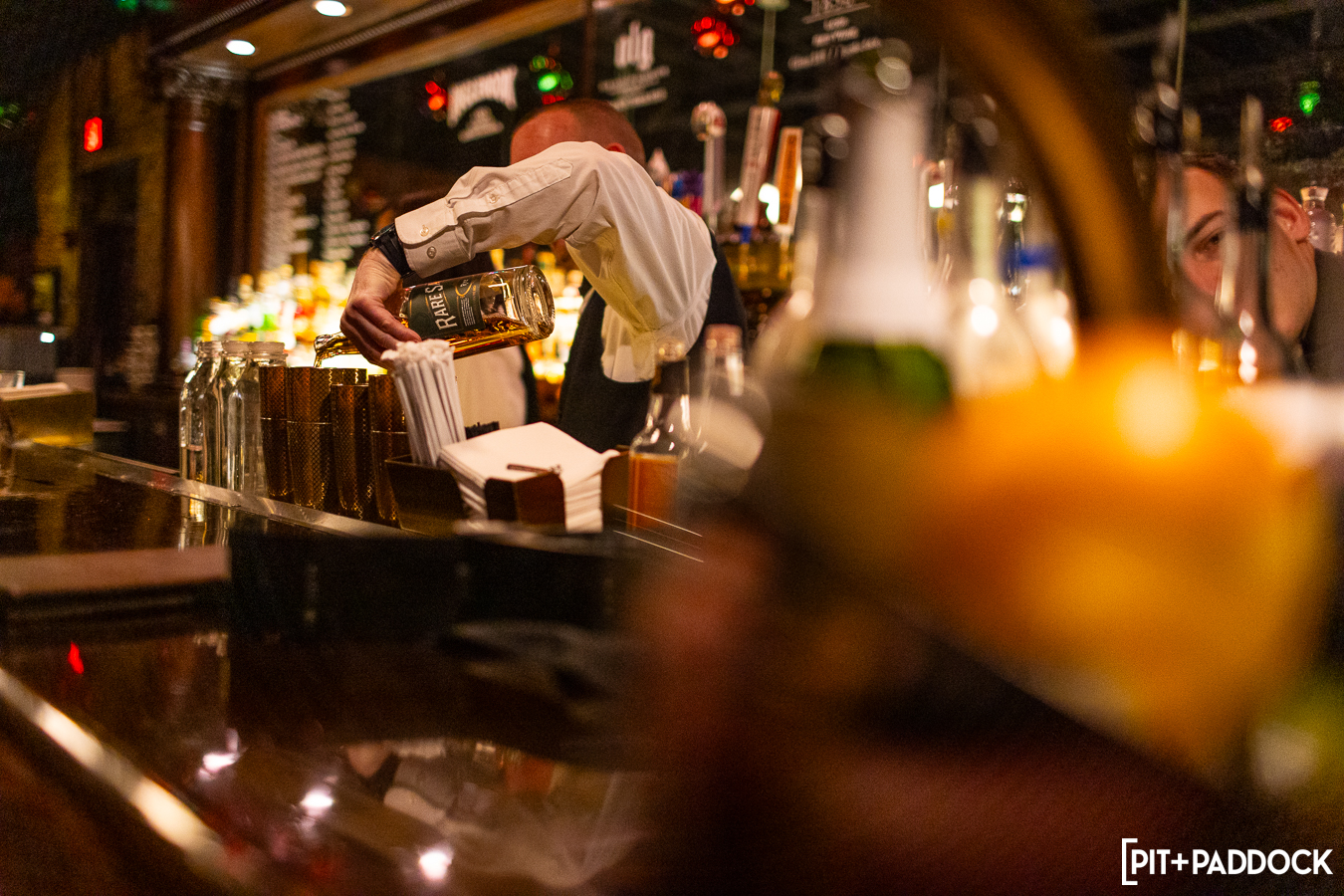 But PRI isn’t the only institution in Indianapolis. Since its founding 122 years ago, St. Elmo Steakhouse has become a landmark dining destination in the Hoosier state’s intimate downtown. Finding a way to pair these two Indy institutions was a priority for Pit+Paddock. After visiting St. Elmo, we discovered the solution was right above us: the 1933 Lounge.