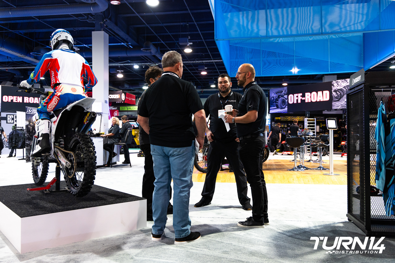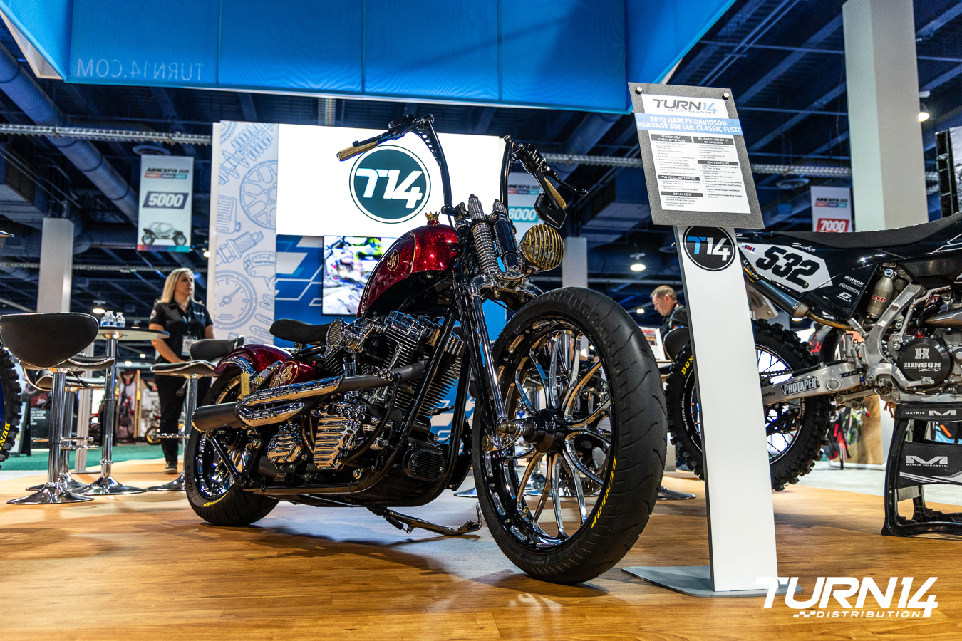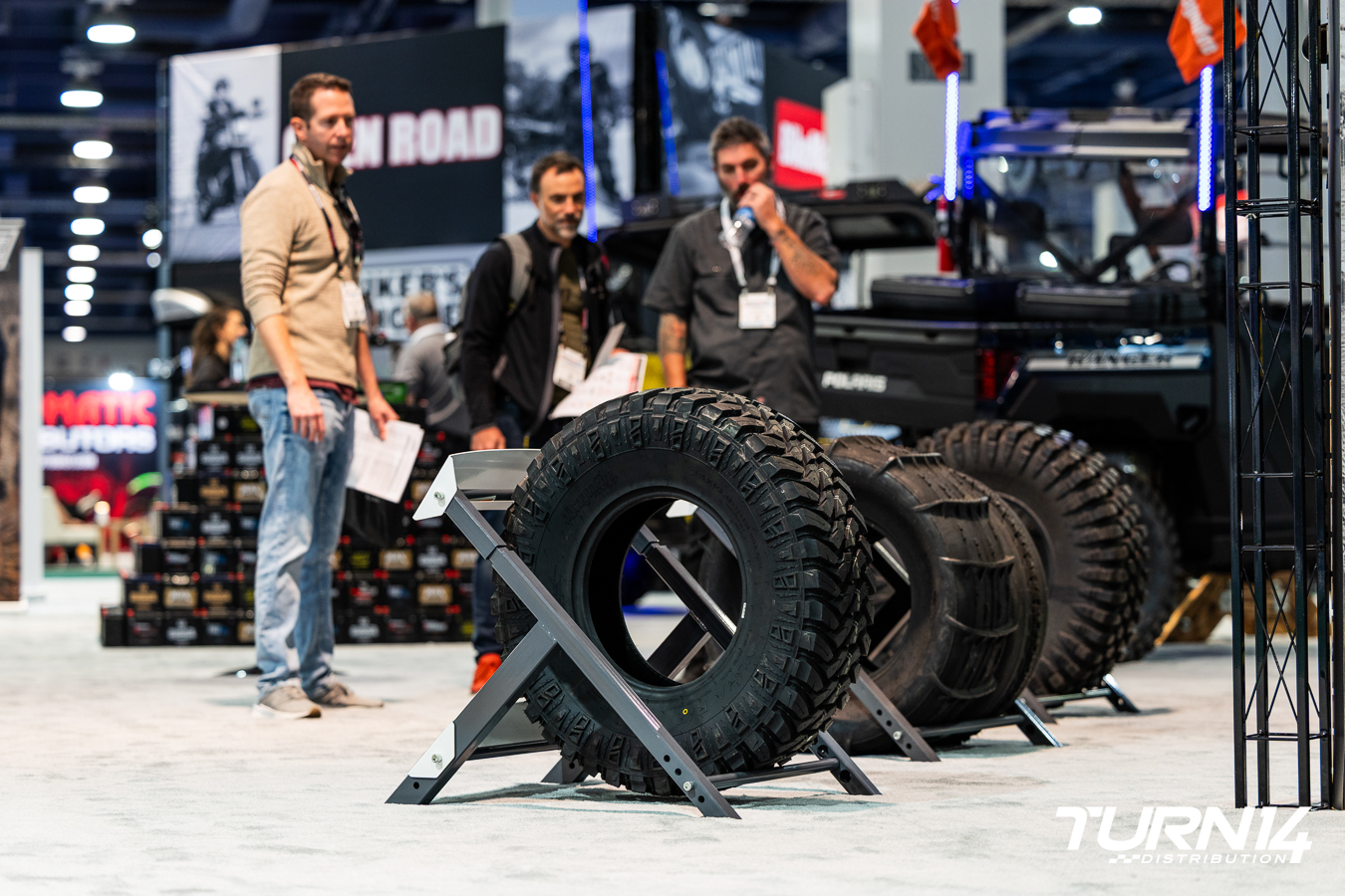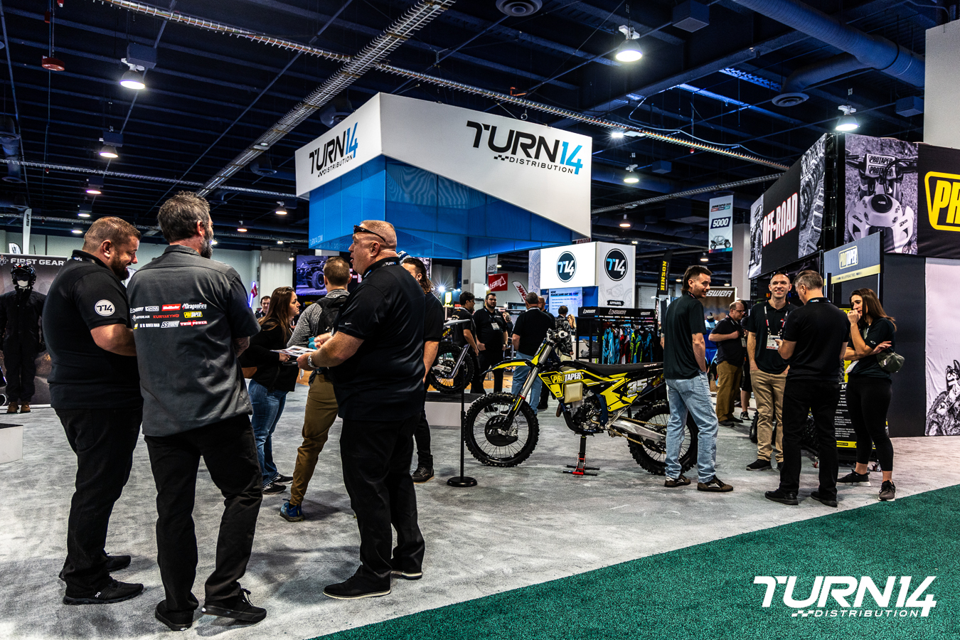 While being a relative newcomer to the Powersports industry, Turn 14 Distribution still made an impression at this year’s AIMExpo, choosing to forego the presenting sponsorship for some extra legroom on the showroom floor. Sporting one of the largest footprints on the convention center floor, with a selection of display vehicles from fully kitted side-by-sides to Senior Sales Specialist Russel Hacker’s pair of Yamaha YZ dirt bikes and fully customized Harley-Davidson Softail Heritage Classic.