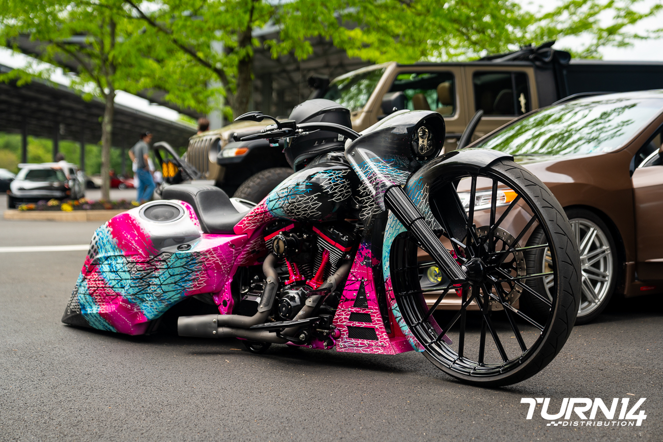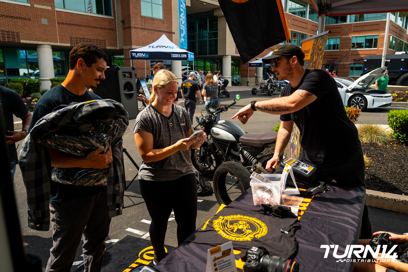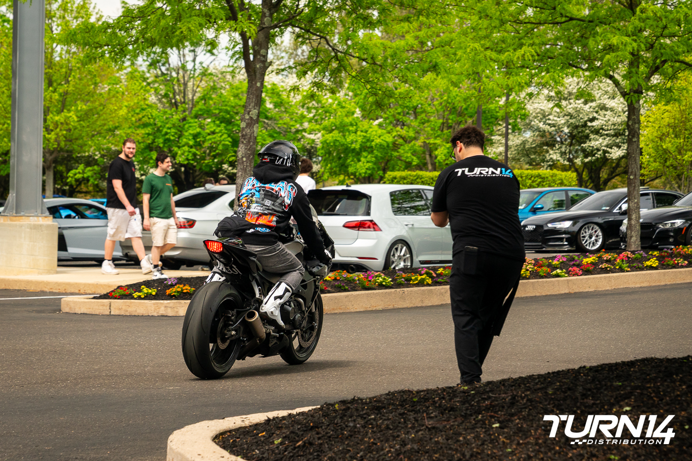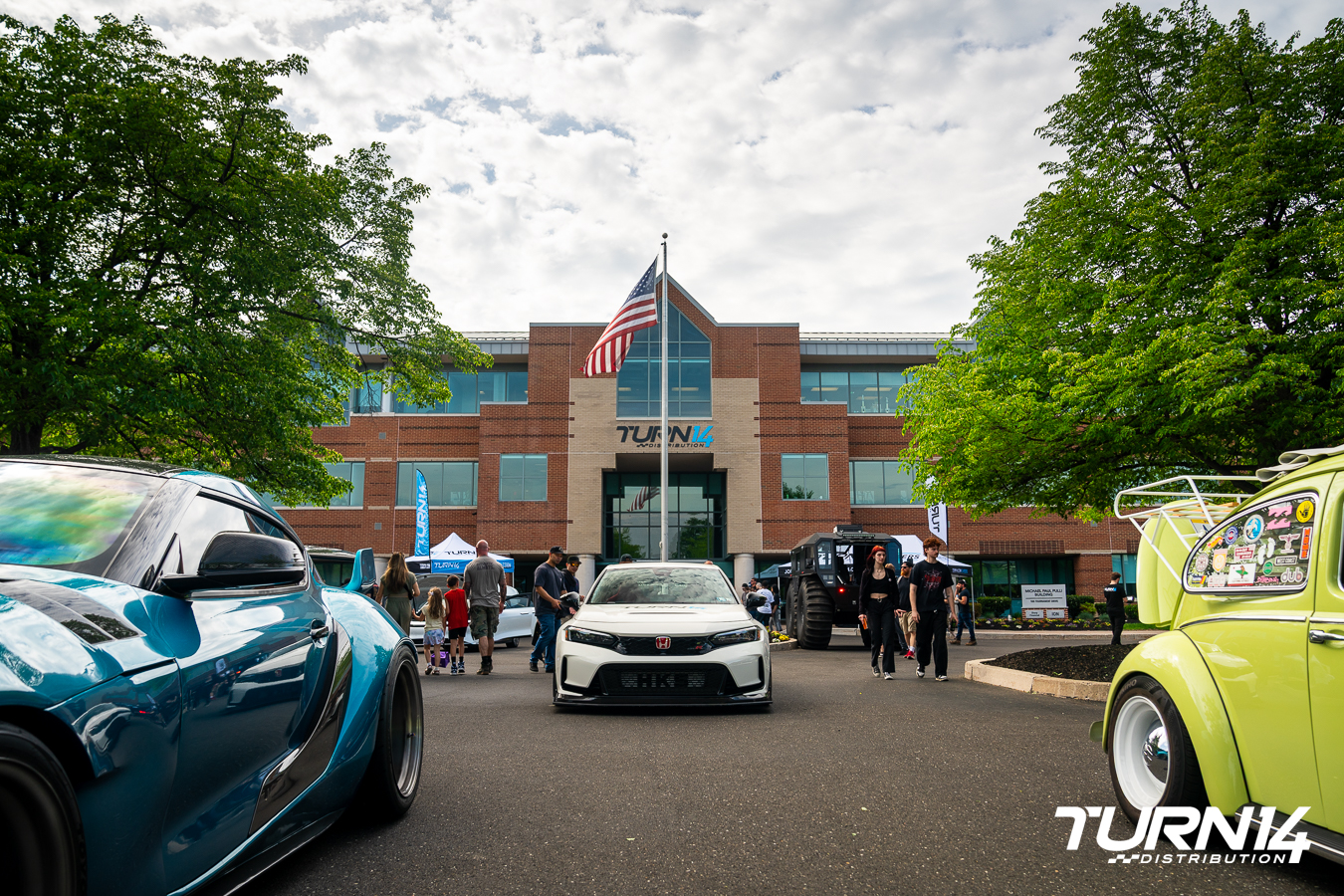 Not all Cars & Coffee gatherings are created equal. An unfortunate majority of them are loosely organized in a strip mall parking lot and are disbanded by mischievous attendees. However, to open the eighth straight year of Cars & Coffee events — now featuring a Motorcycle Alley — at Turn 14 Distribution’s headquarters in Horsham, PA, a standout experience for automotive and powersports enthusiasts wasn’t all that was on offer. Our focus remains on hosting high-quality events connecting the community with partner brands that drive the industry, like Fluidampr and Continental Tire. Our own Philanthropy Committee positioned Harley’s Haven Dog Rescue and its adoptable pups in the spotlight to increase awareness for a local charitable cause. To highlight Turn 14’s partnerships in the industry, all-new exclusive dealer parking was made available for members of our vast dealer and repair shop network.