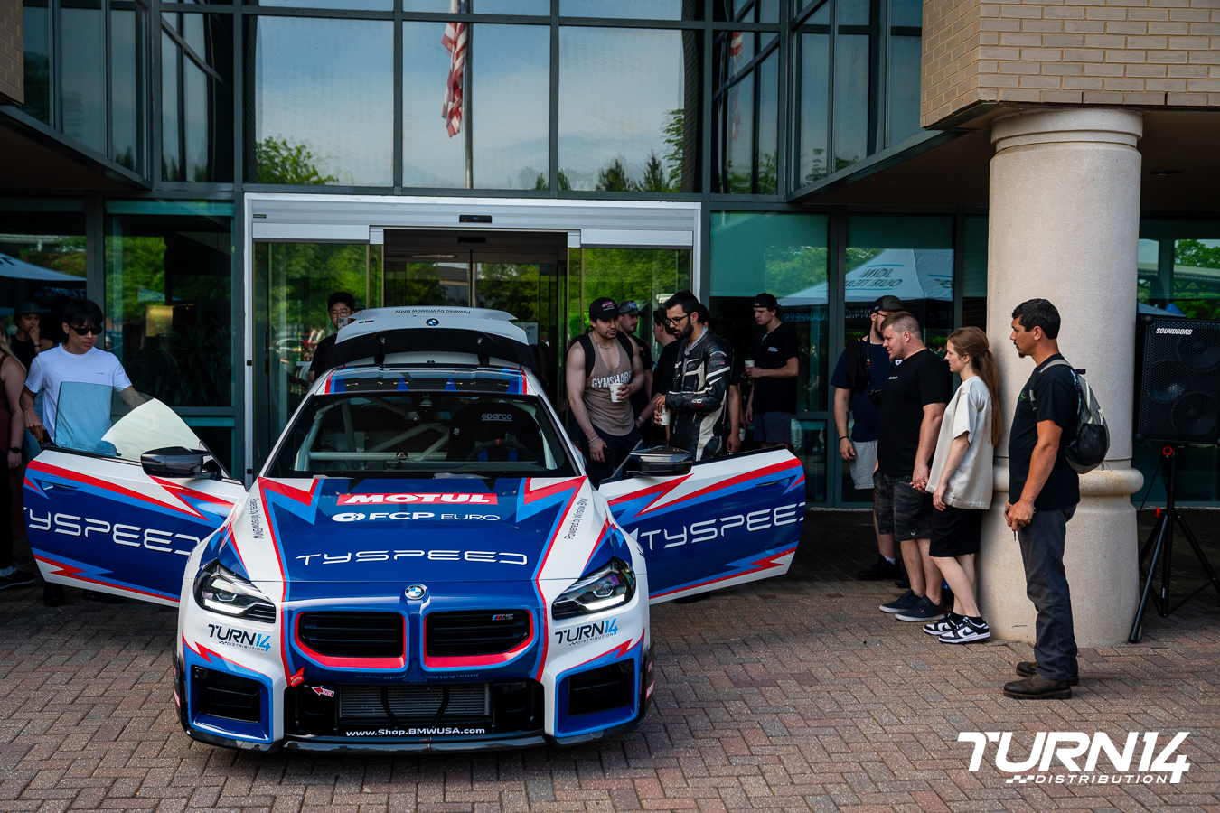 As the sole U.S. and Canada automotive distributor for the Akrapovič brand, we were excited to help unveil Tyspeed’s Akrapovič-equipped BMW M2 Pikes Peak challenger at our event. The car will be chasing the production record up Colorado’s fabled mountain this June. Tyler Pappas, of Tyspeed, was on-site to say a few words and thank partners before pulling the cover off and revealing the Andy Blackmore-designed livery. After treating attendees to a taste of the Akrapovič exhaust sound, visitors were free to walk around the Sparco-equipped race-prepped chassis with a Radium Engineering fuel system.